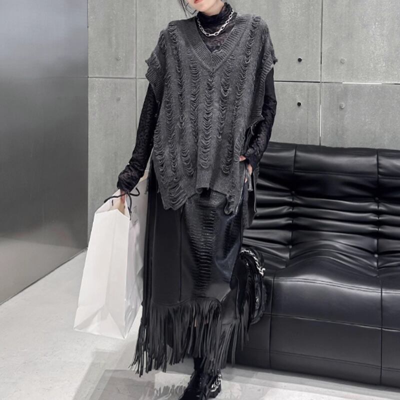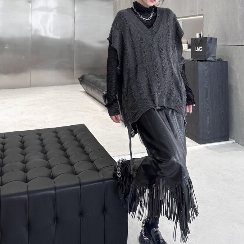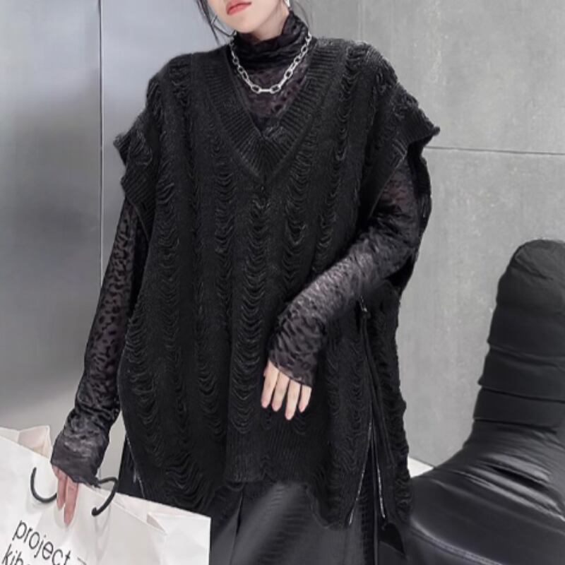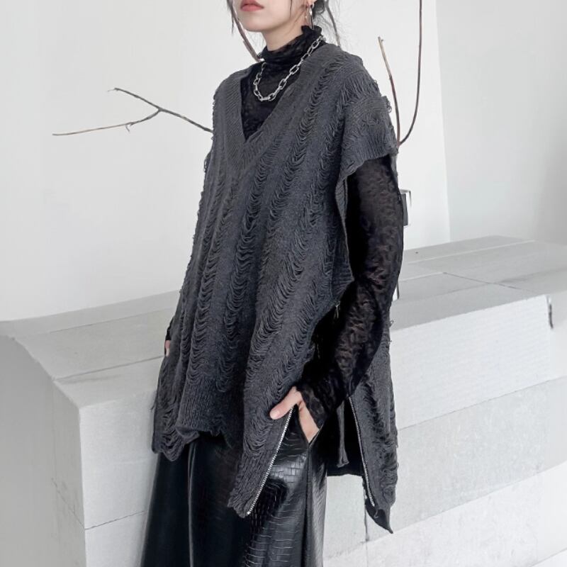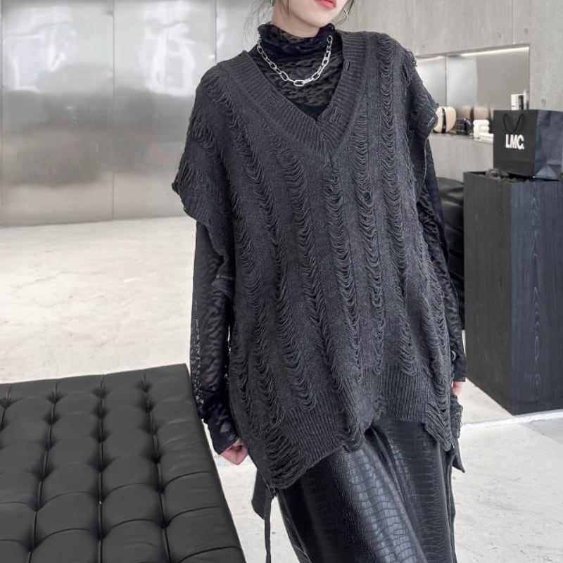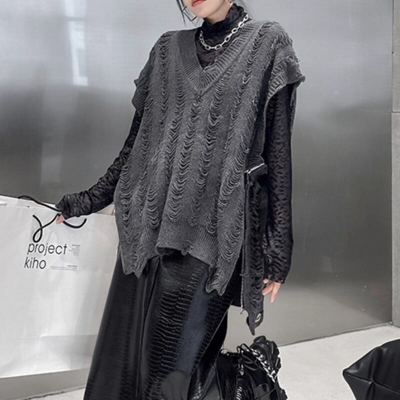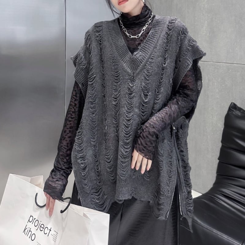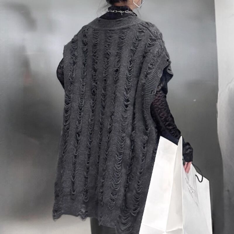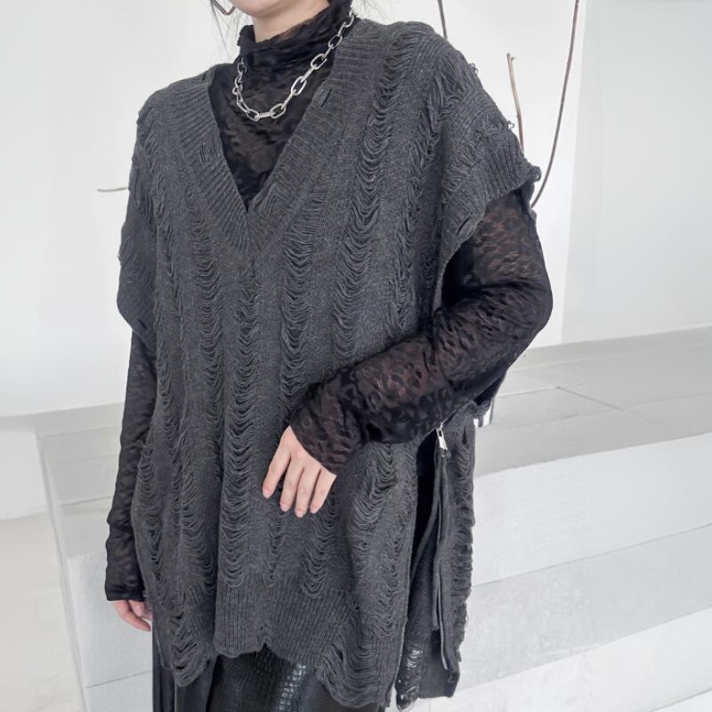 distressed knit vest / 2colors l0001