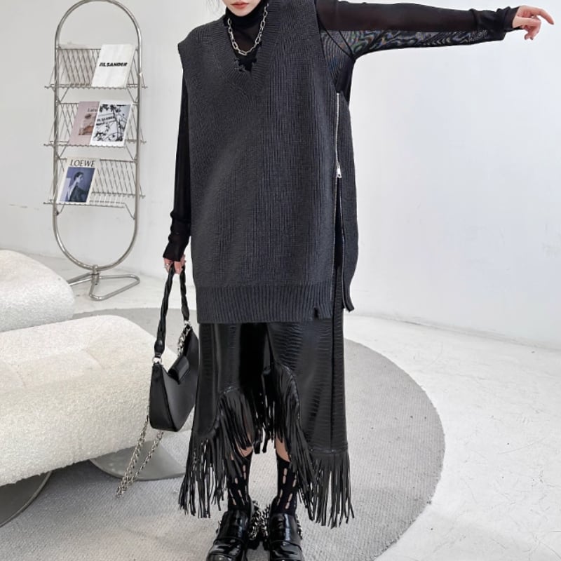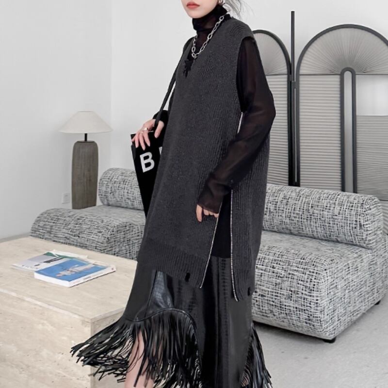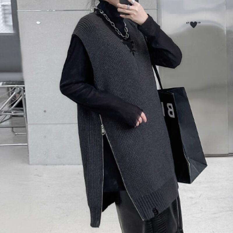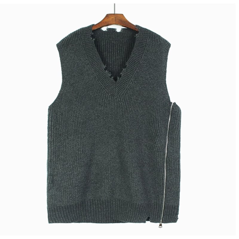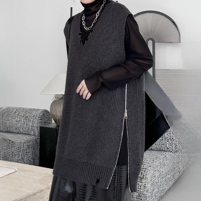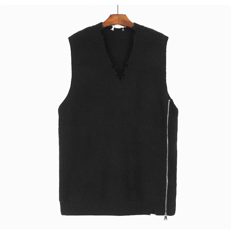 シンプルながらも洗練されたデザインが魅力のジップニットベストです。