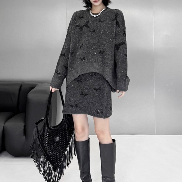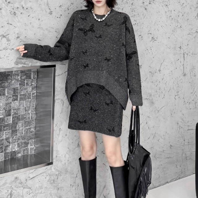 華やかな蝶モチーフが特徴のトレンドセットアップです。
