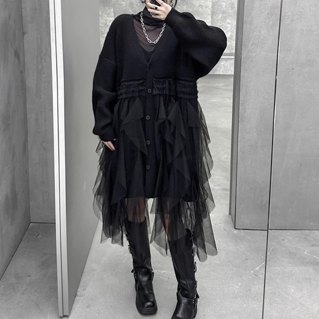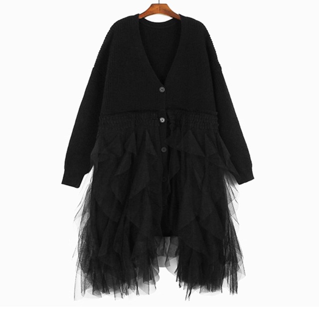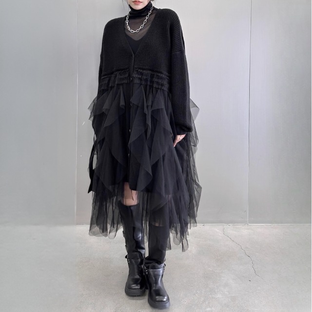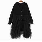 vneck knit tulle onepiece / l0009
