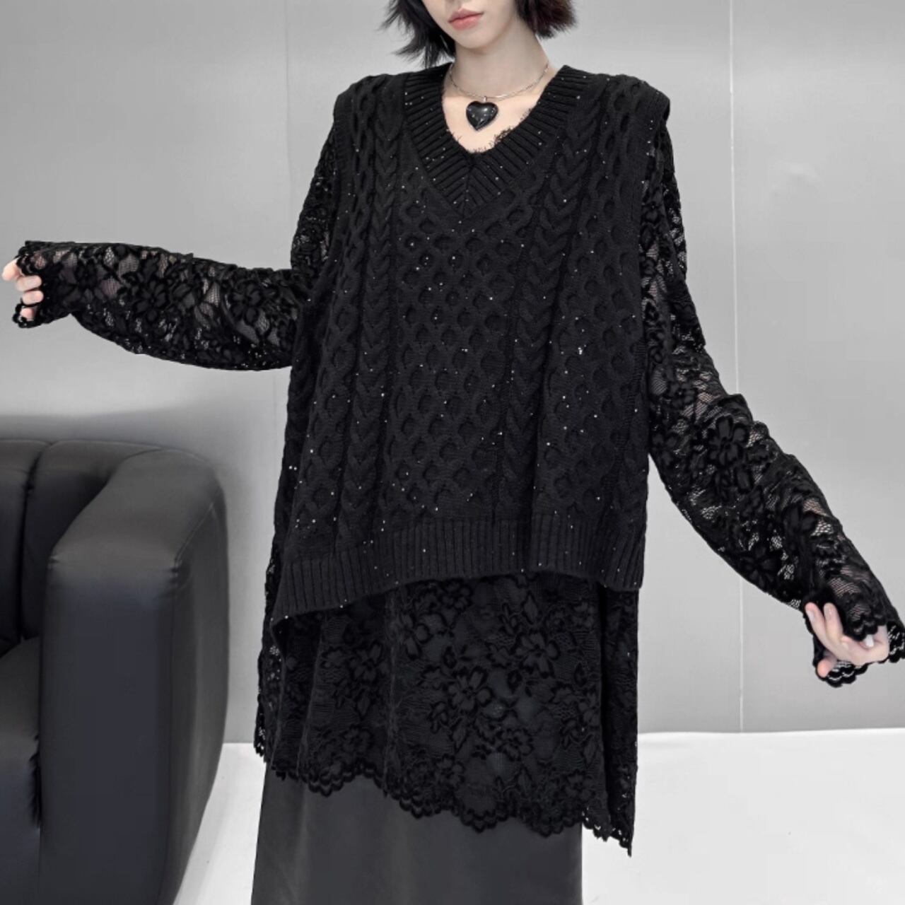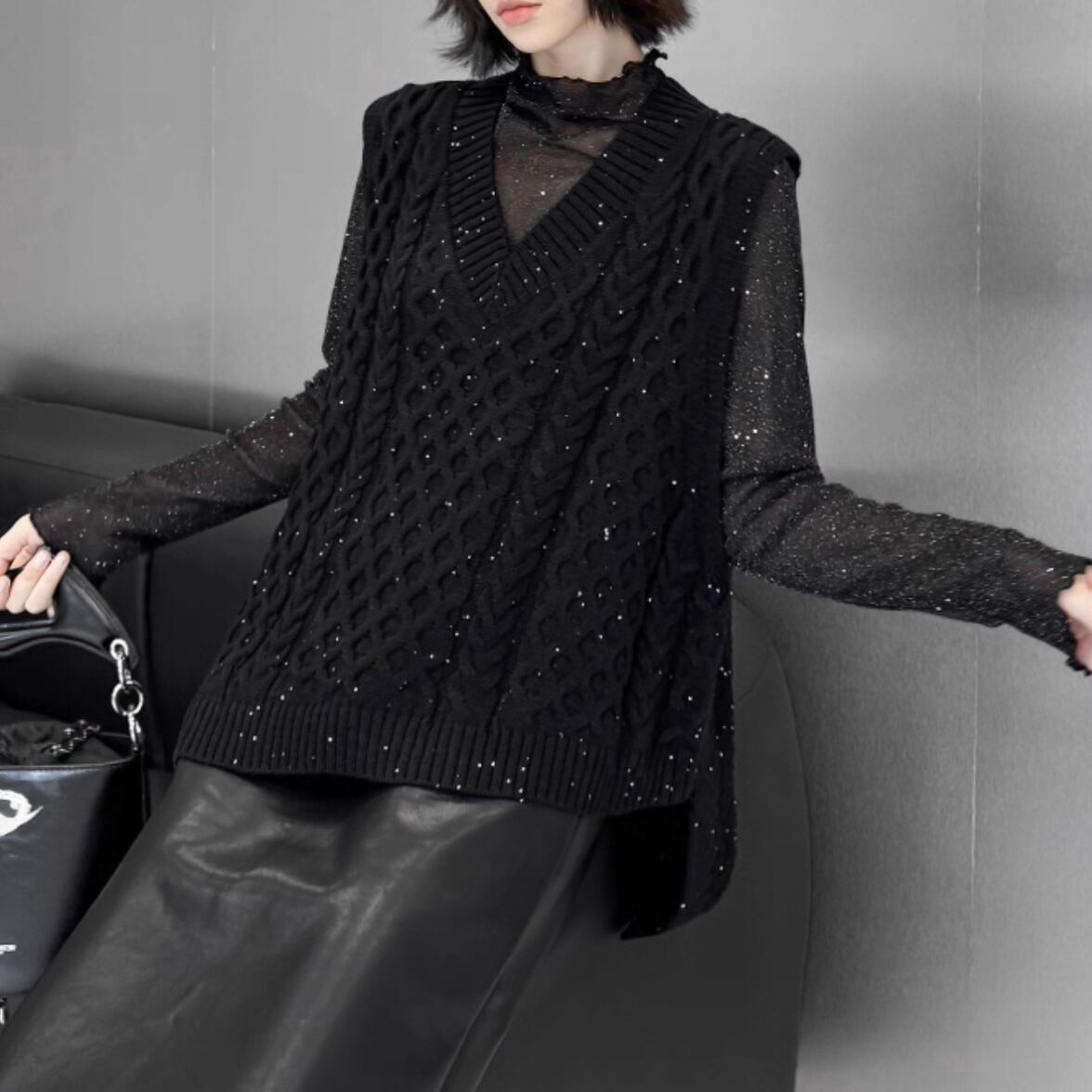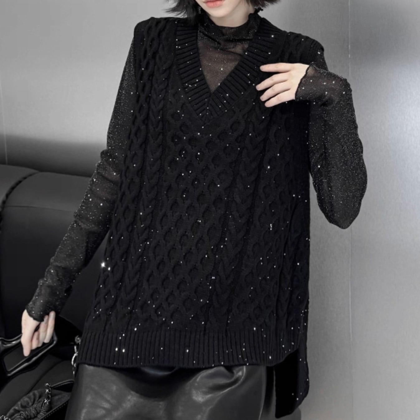lame knit vest / l0041
