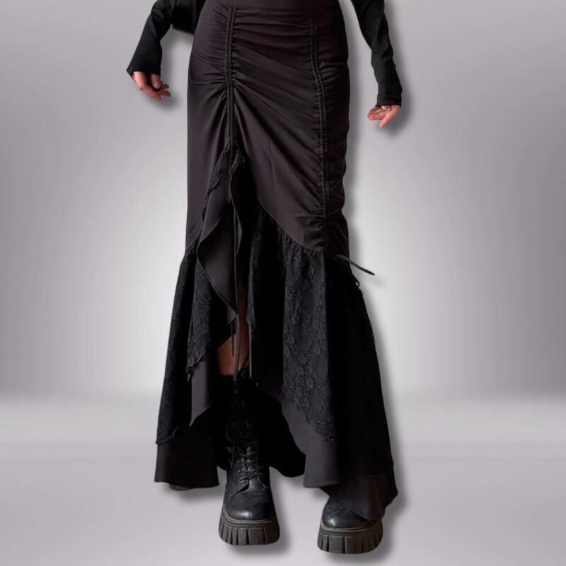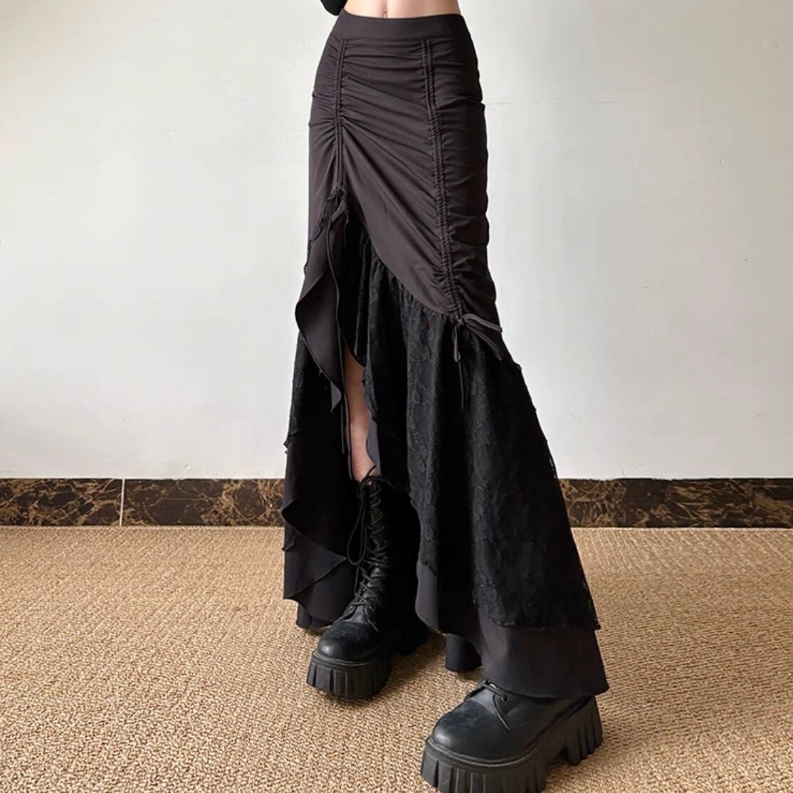 優雅なスリットデザインが特徴のこのレーススカートは、