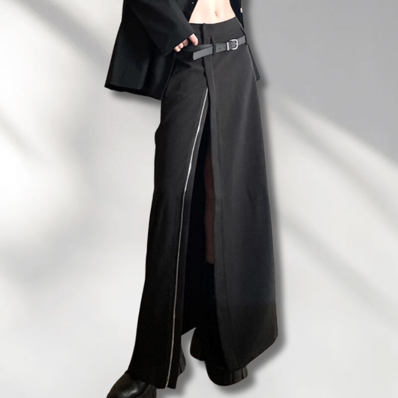 zip straight long skirt / l0019