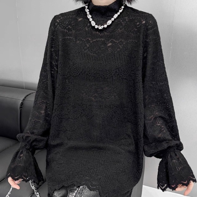 sheer lace flare sleeve tops / l0026