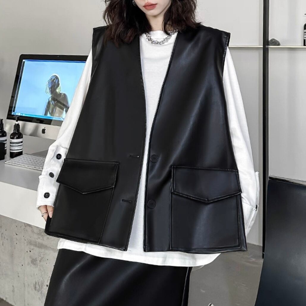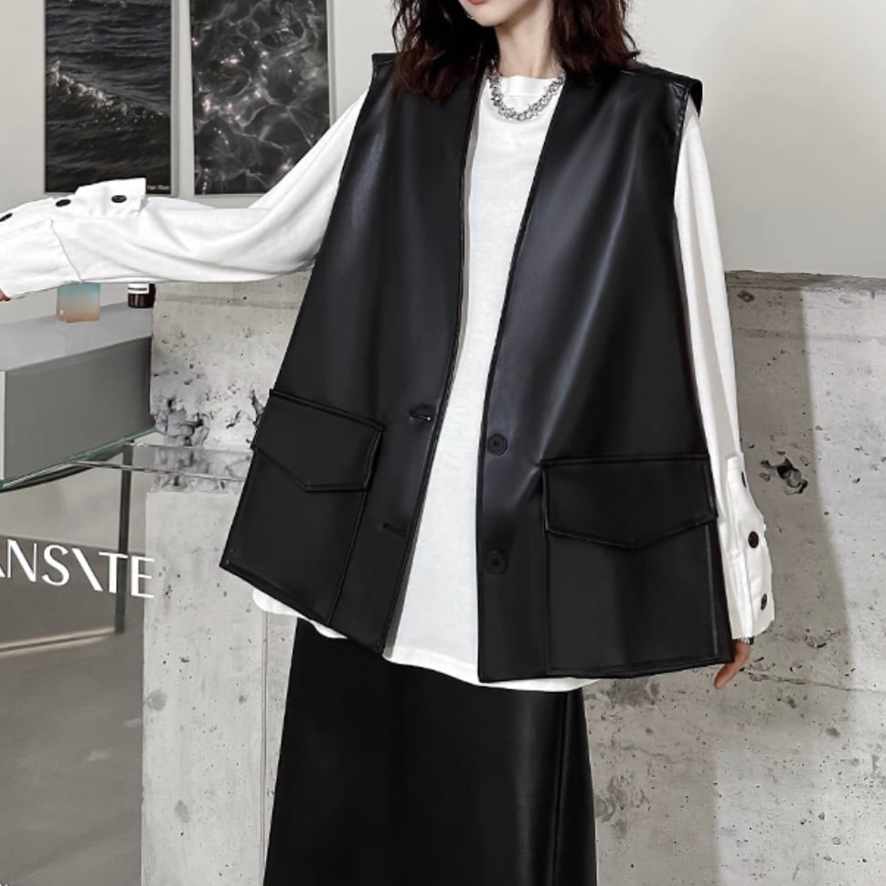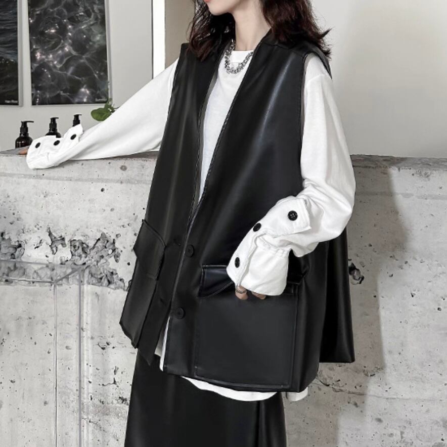 マットなフェイクレザーが存在感を放つオーバーベスト。