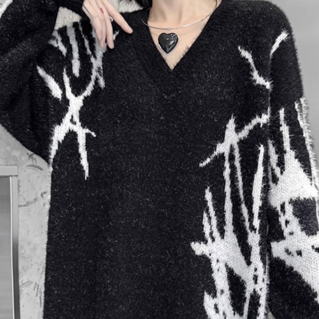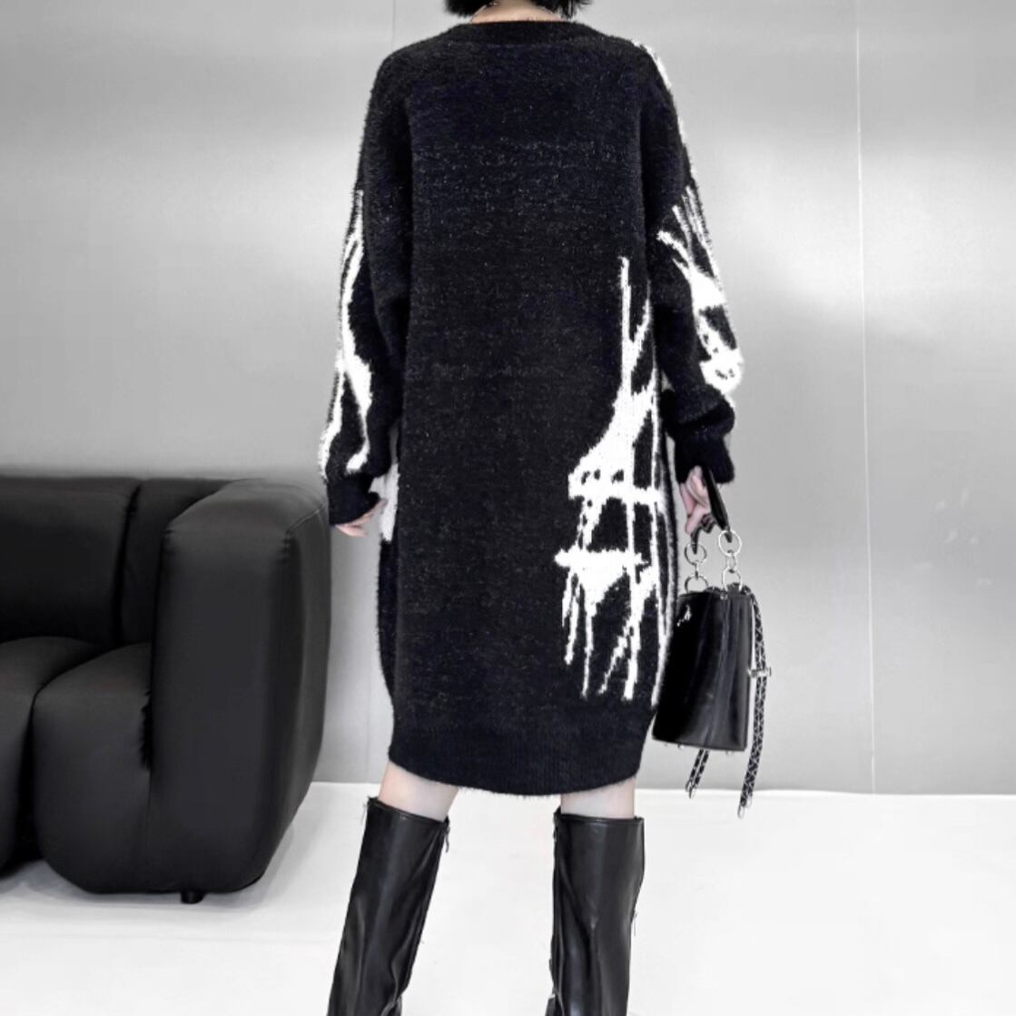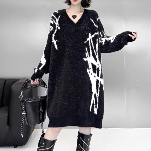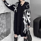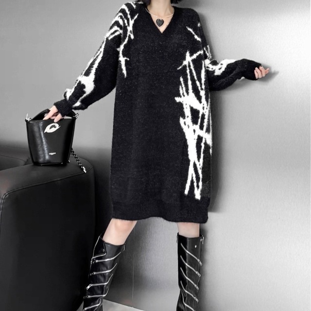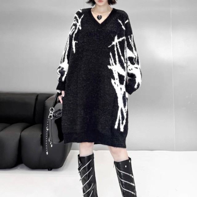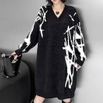 大胆なグラフィックデザインが目を惹くニットワンピース。