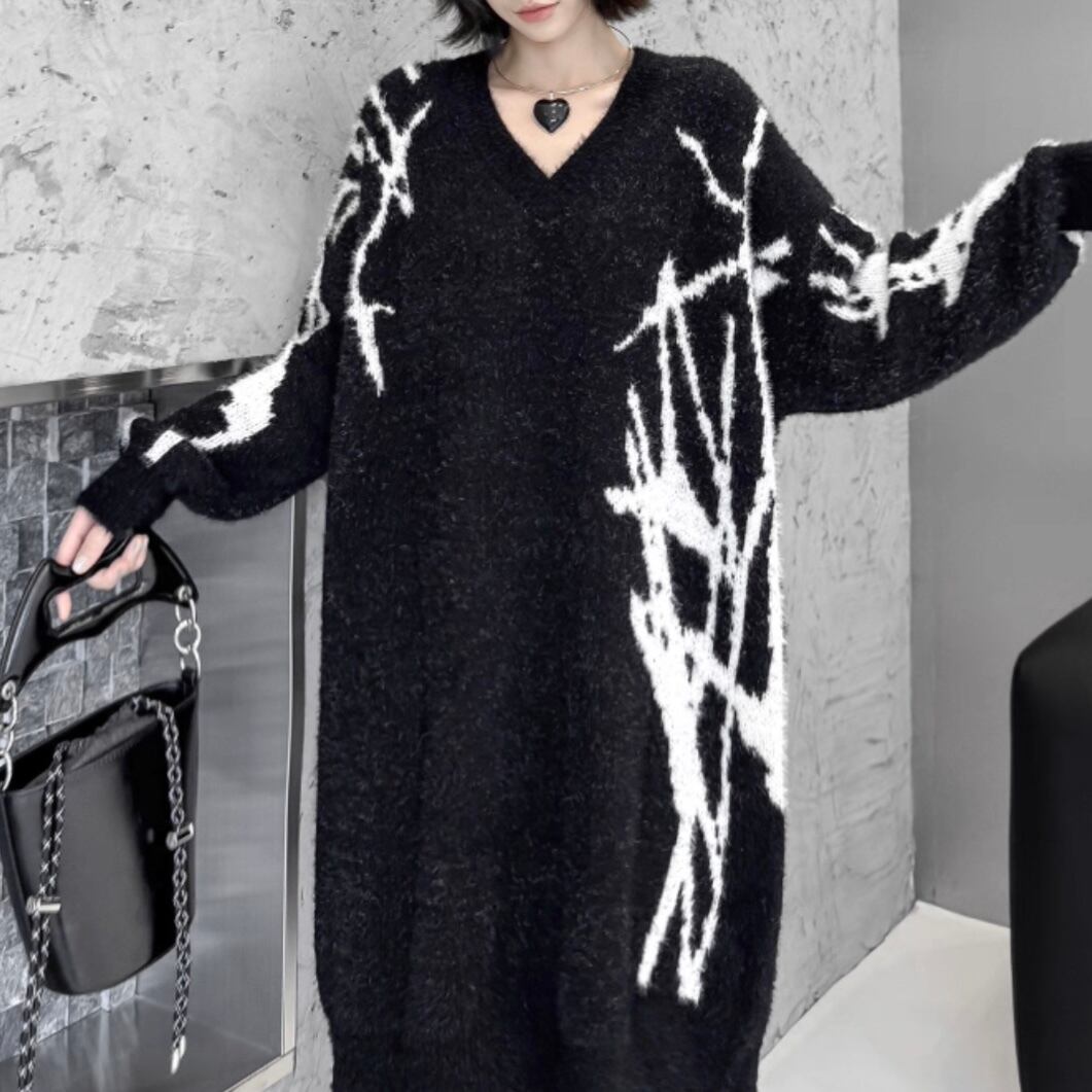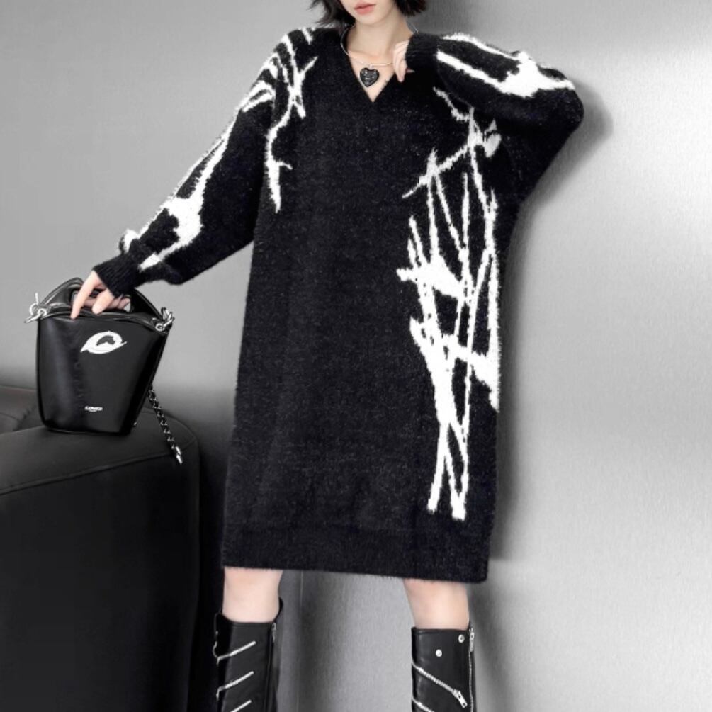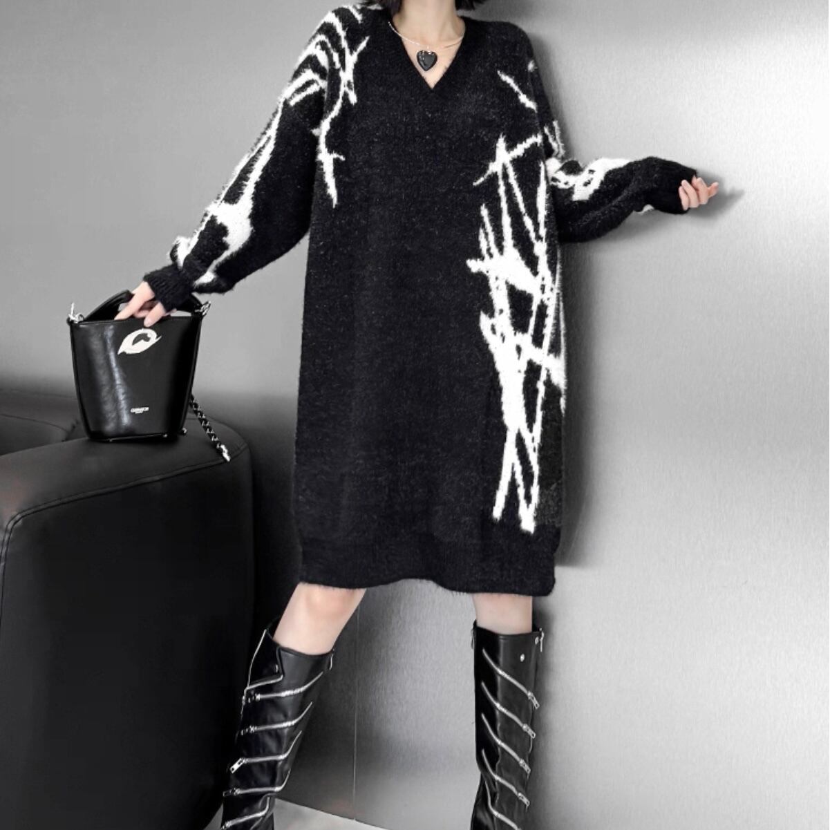vneck graphic knit onepiece / l0028