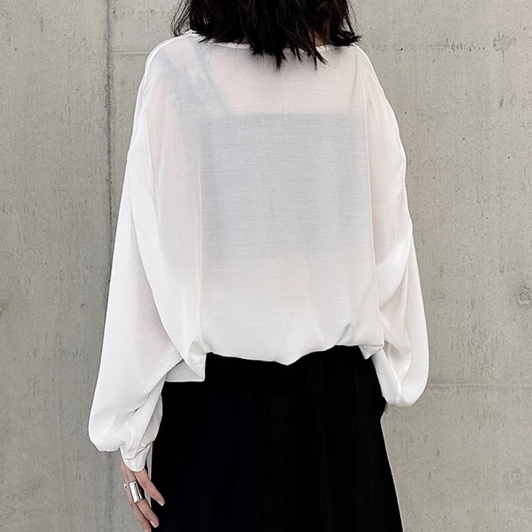 やわらかい透け感とゆるめのシルエットが魅力のトップス。