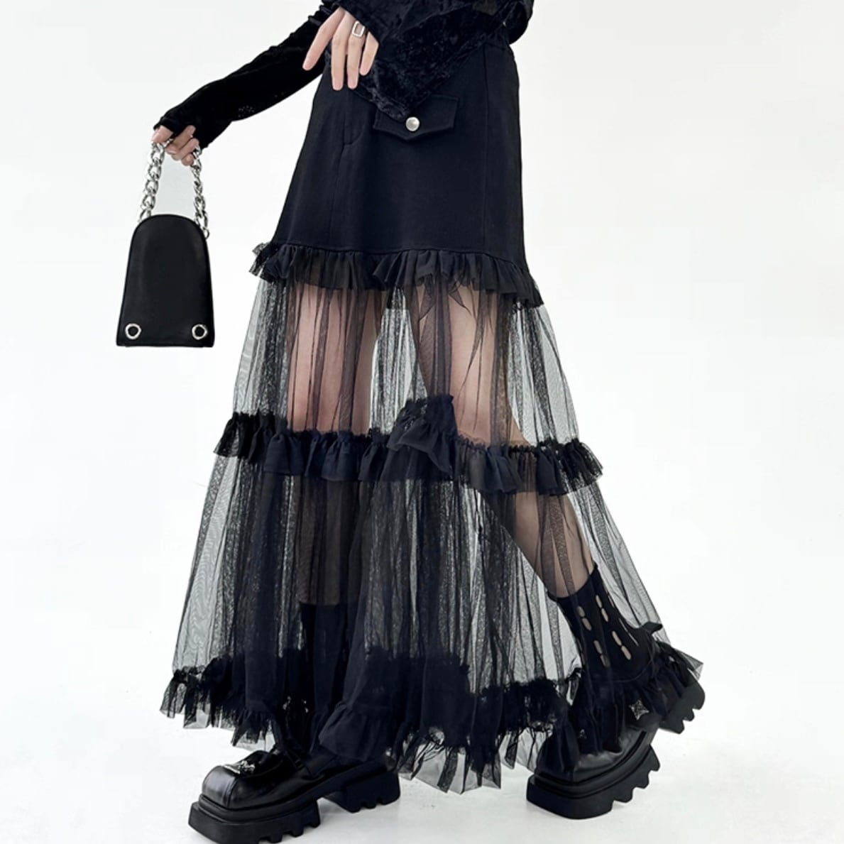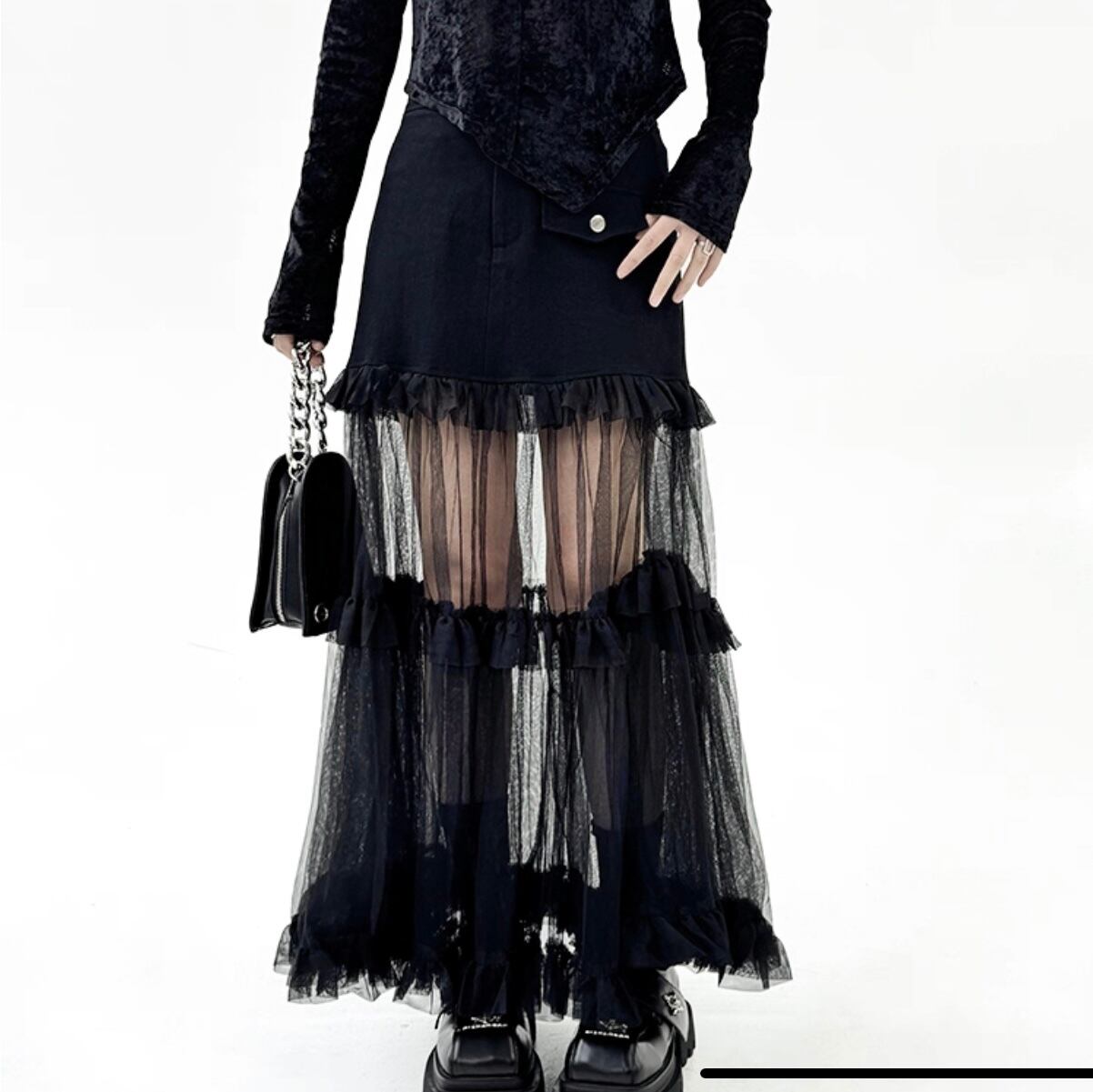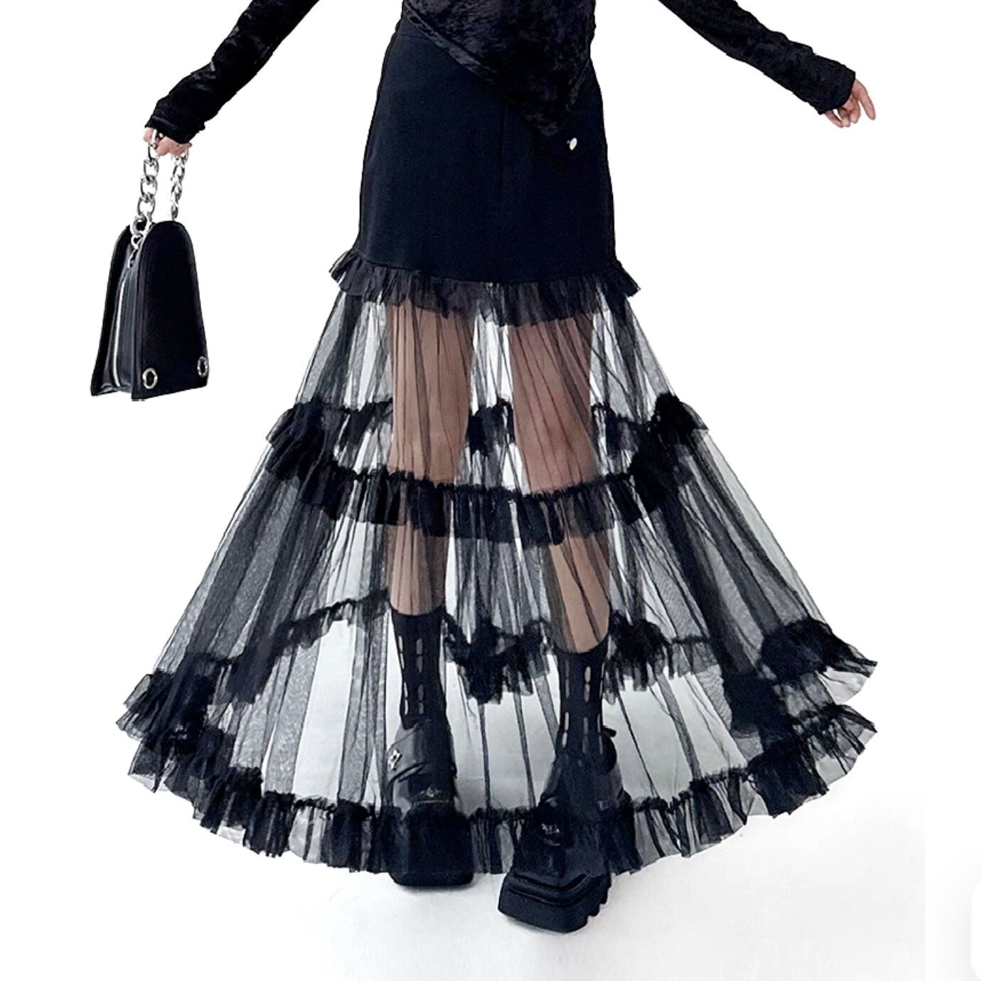 sheer layered long skirt / l0023