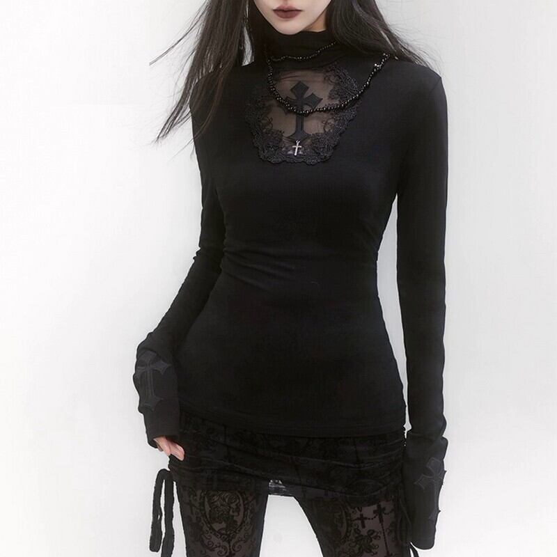 胸元にあしらったレースとクロスデザインが印象的なトップス。