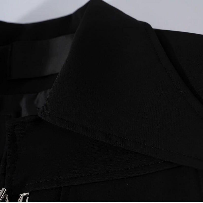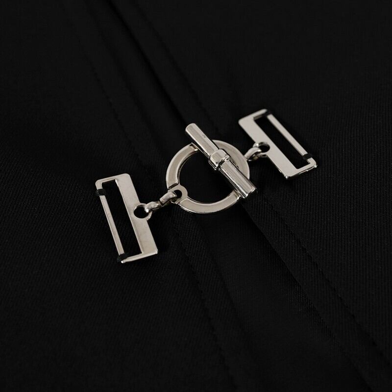 フロントのフック金具がアクセントになったクロップドジャケット。