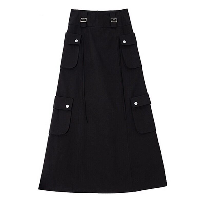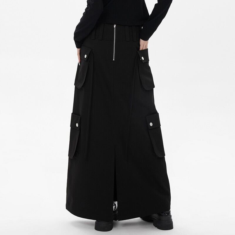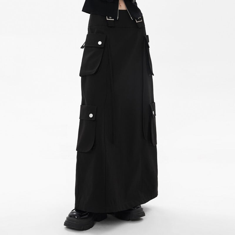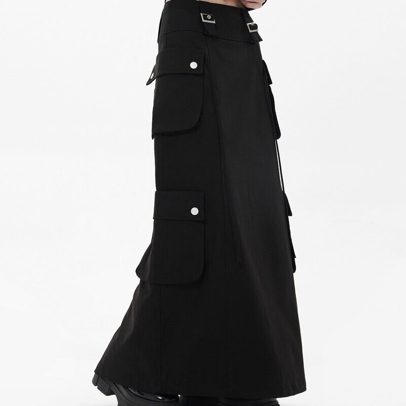 立体感のあるカーゴポケットが印象的なロングスカート。