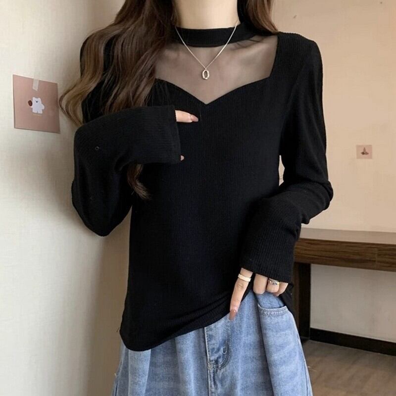 sheer vneck tops / l0034
