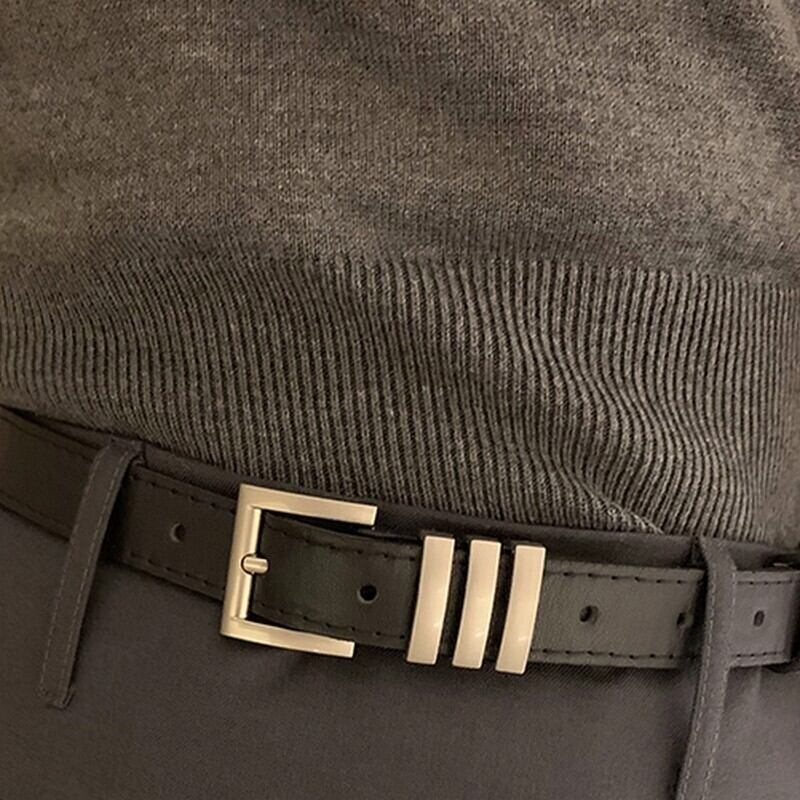 スクエアバックルがアクセントになるフェイクレザーベルト。