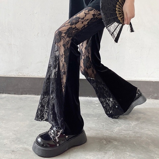 velour lace flare pants / l0043