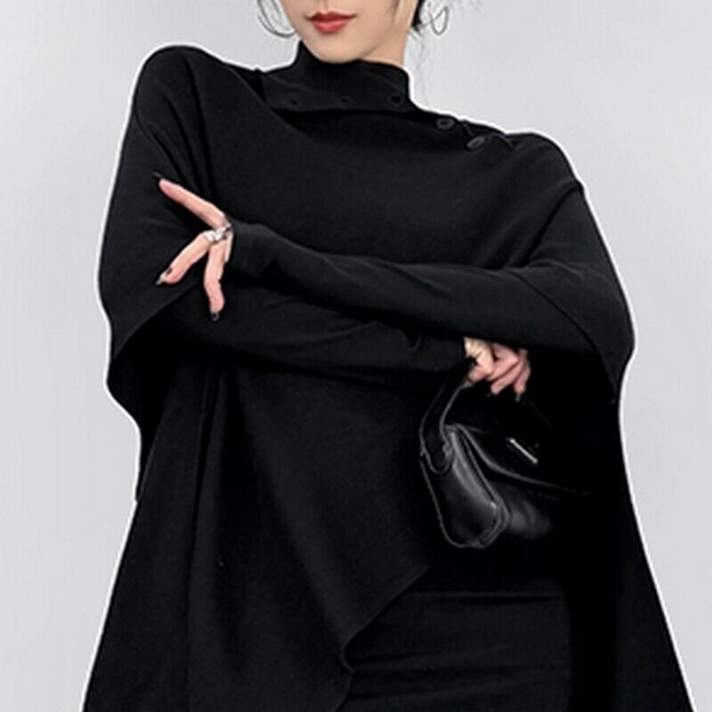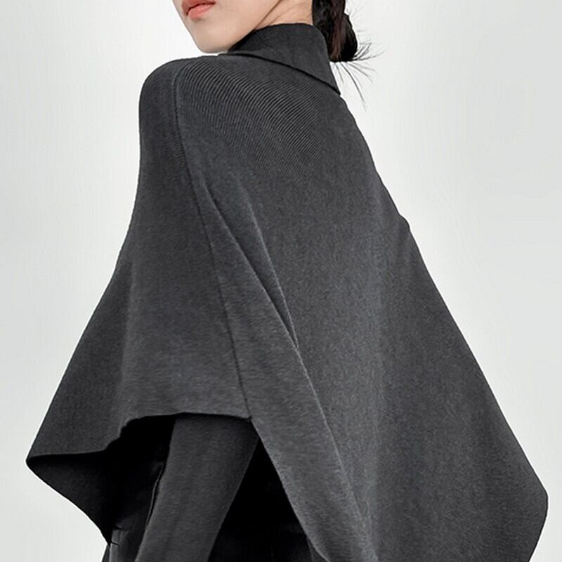 アシンメトリーなシルエットが目を惹くハイネックデザイン。