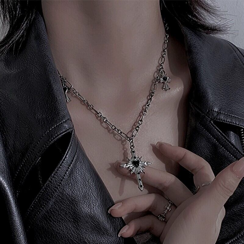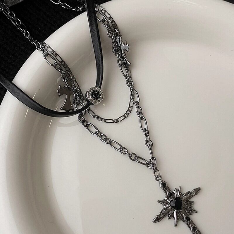 首元に存在感を与えながら、モードな雰囲気を引き立てるデザインです。