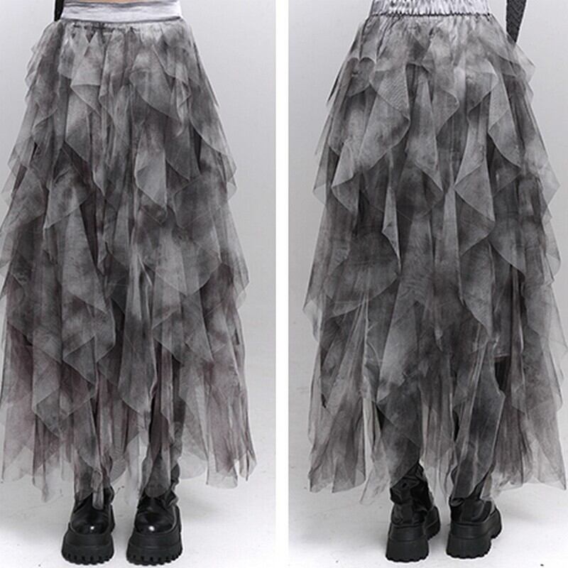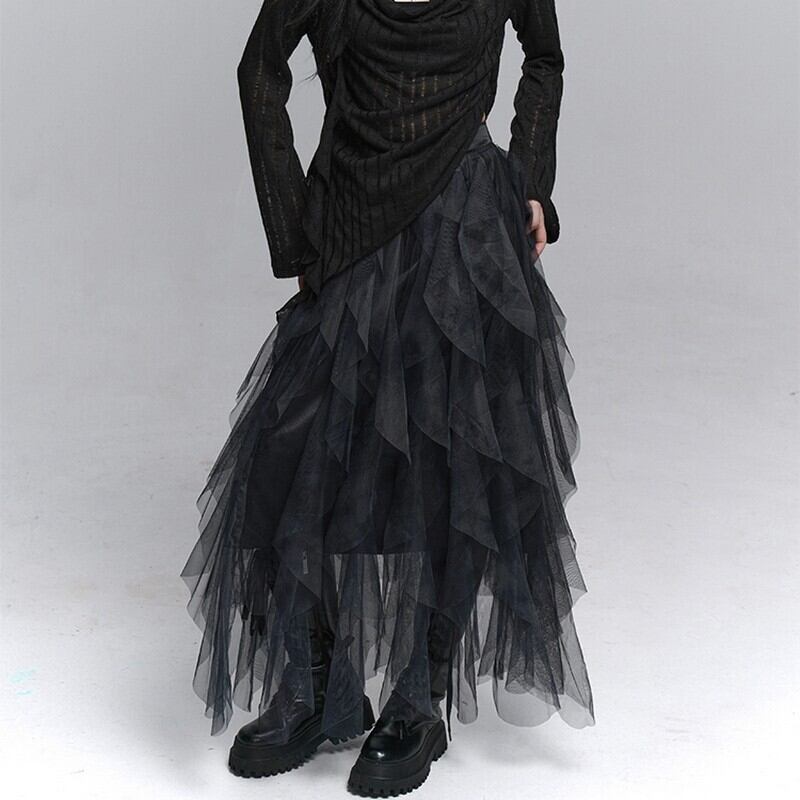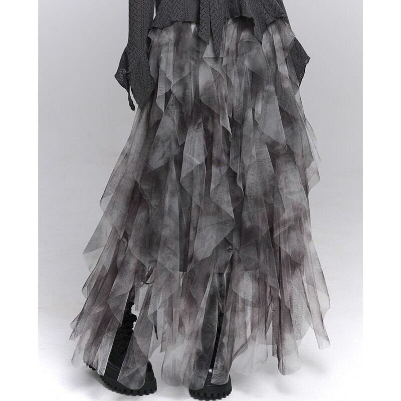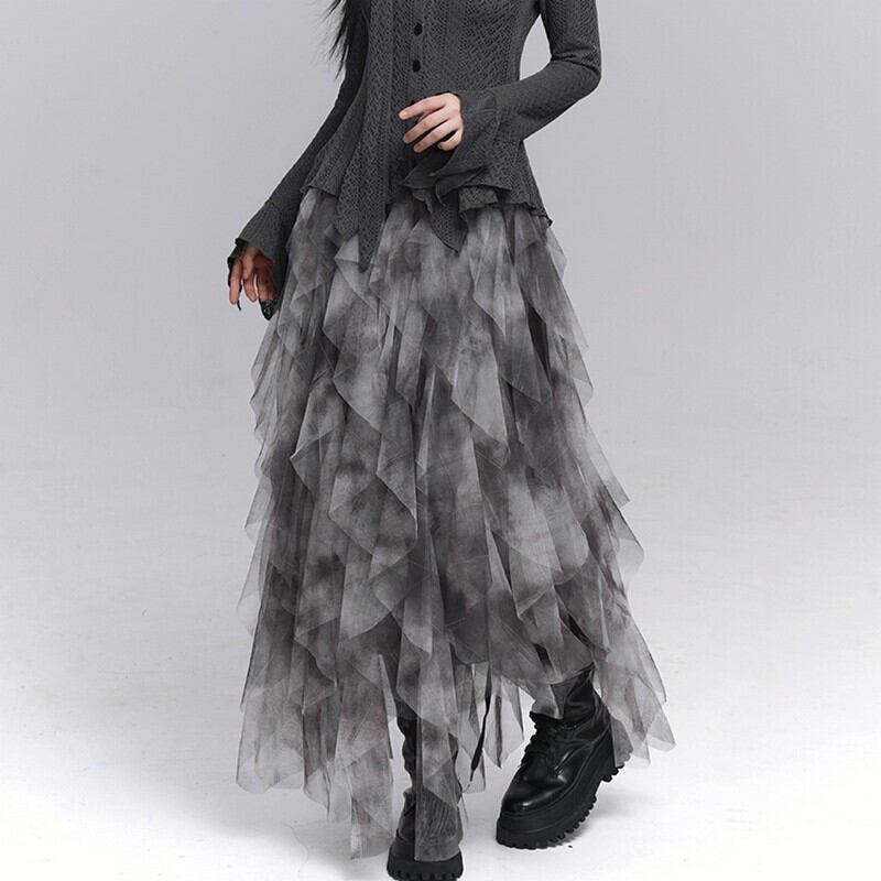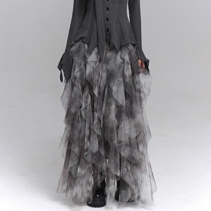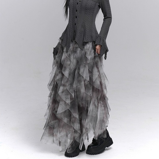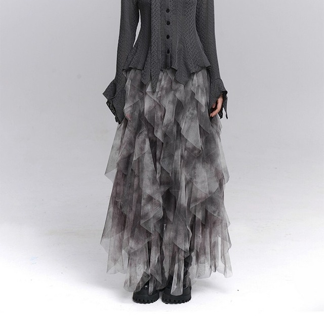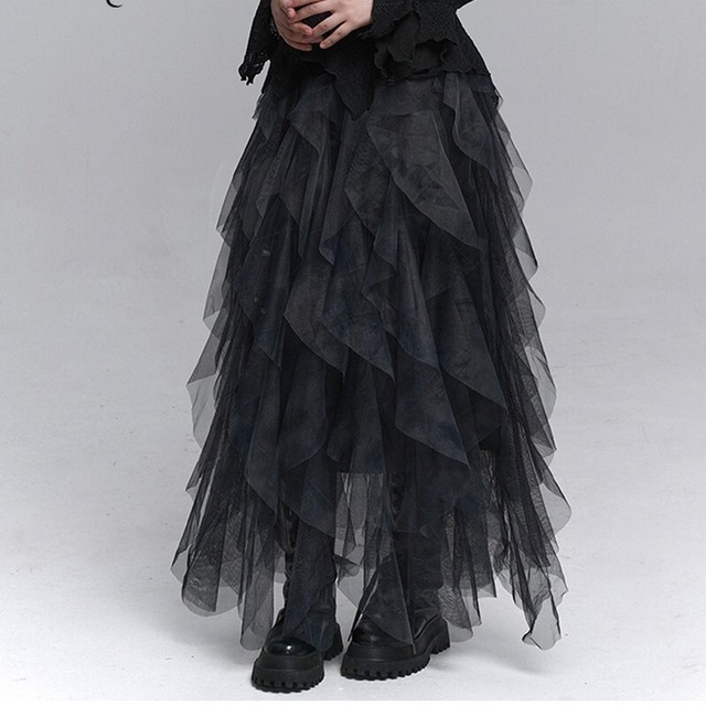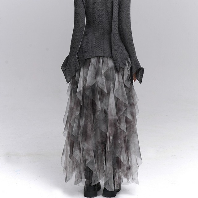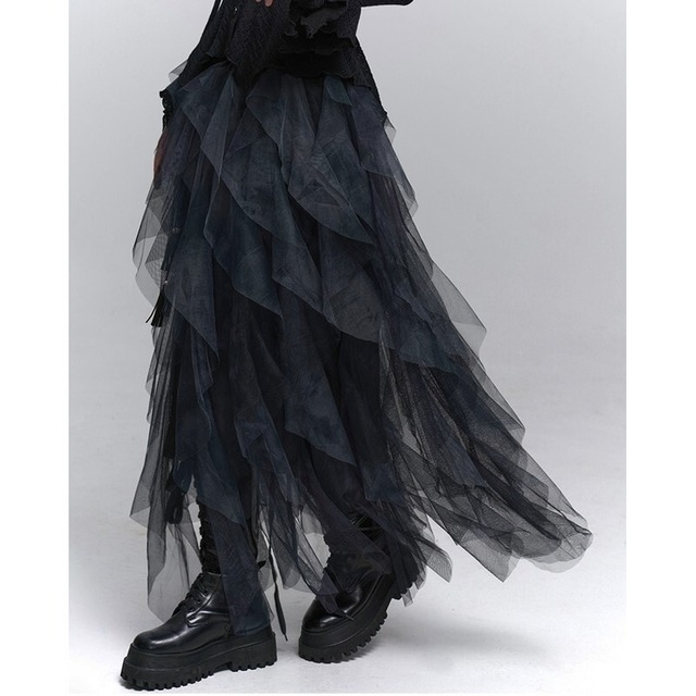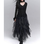 動きのあるレイヤードチュールが印象的なロングスカート。