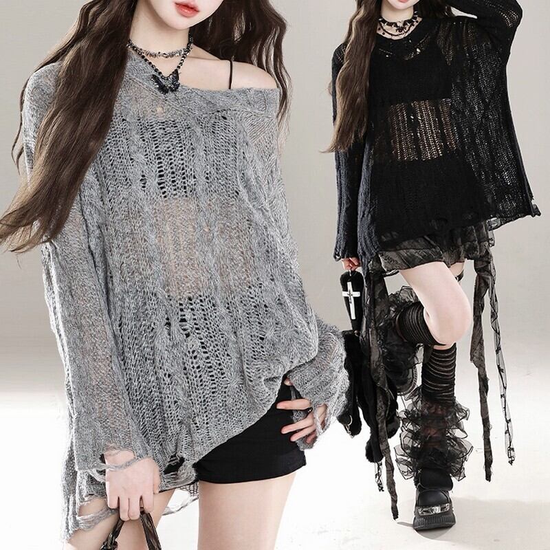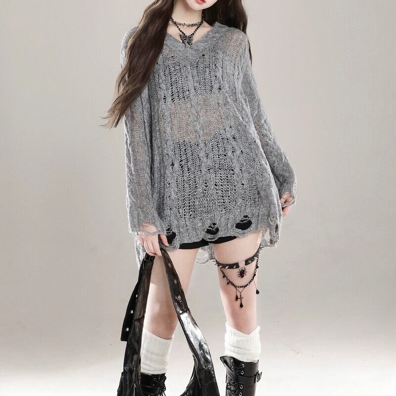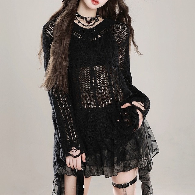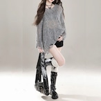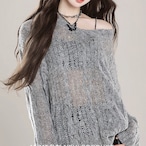 ざっくりとした編み地とダメージ加工が抜け感をつくるルーズニット。
