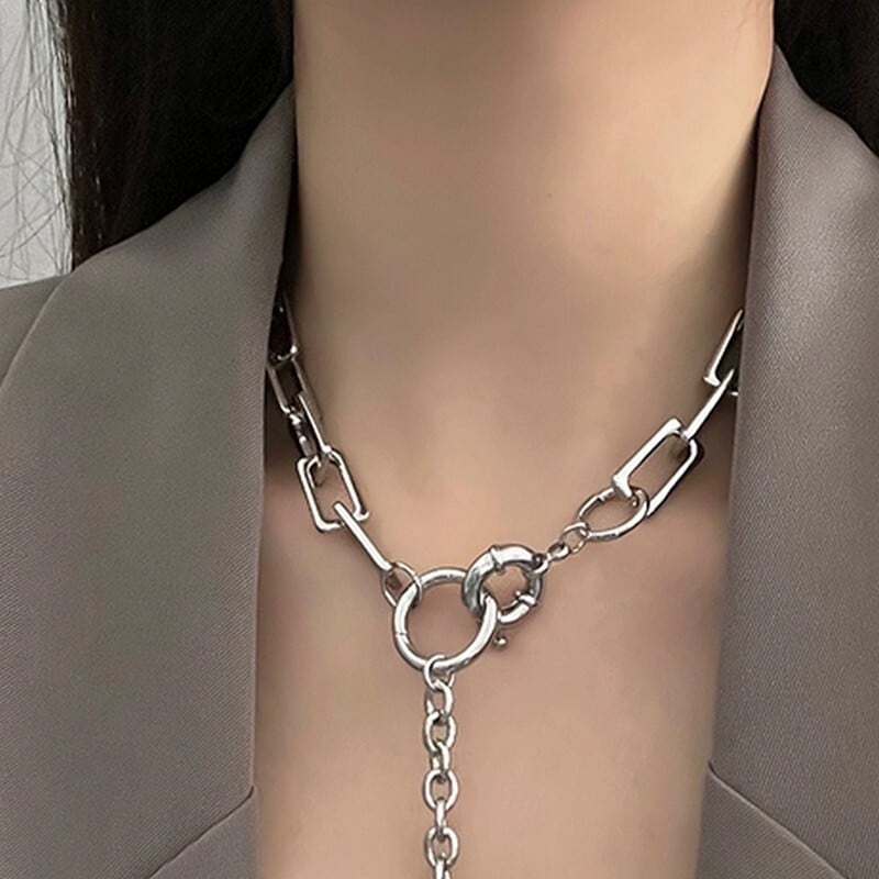 スクエアチェーンがポイントのクールなチョーカーネックレス。