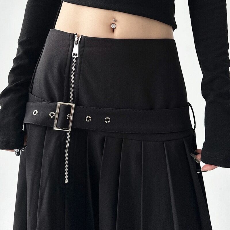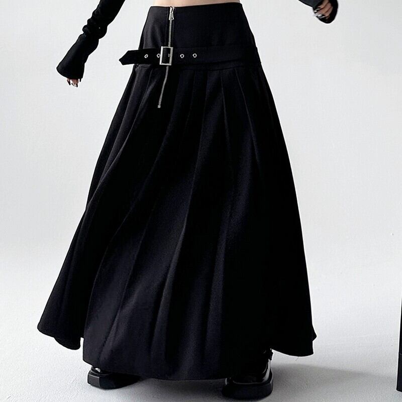 zip belt pleat skirt / l0087