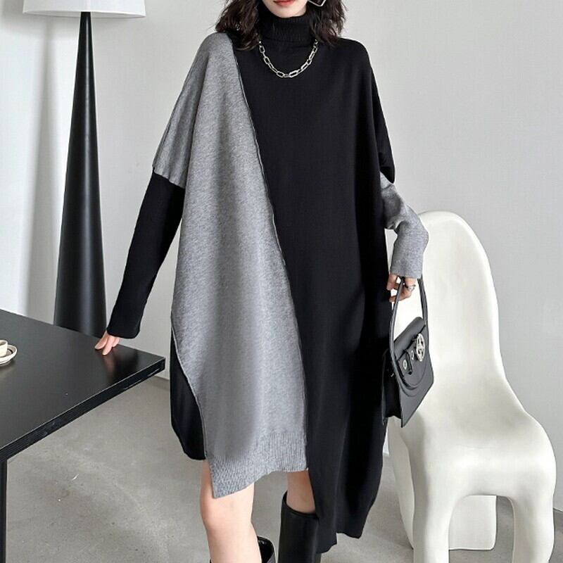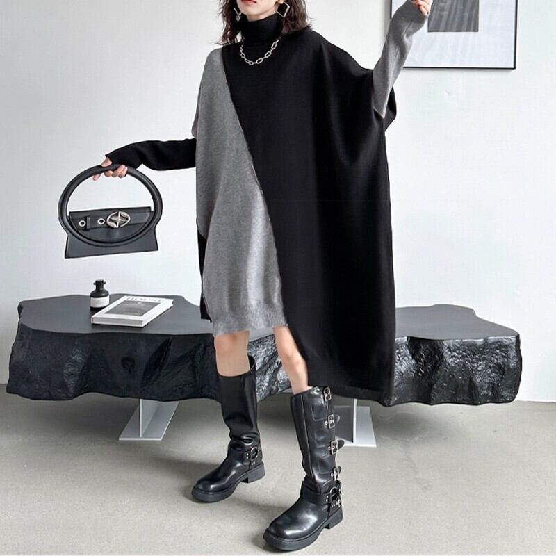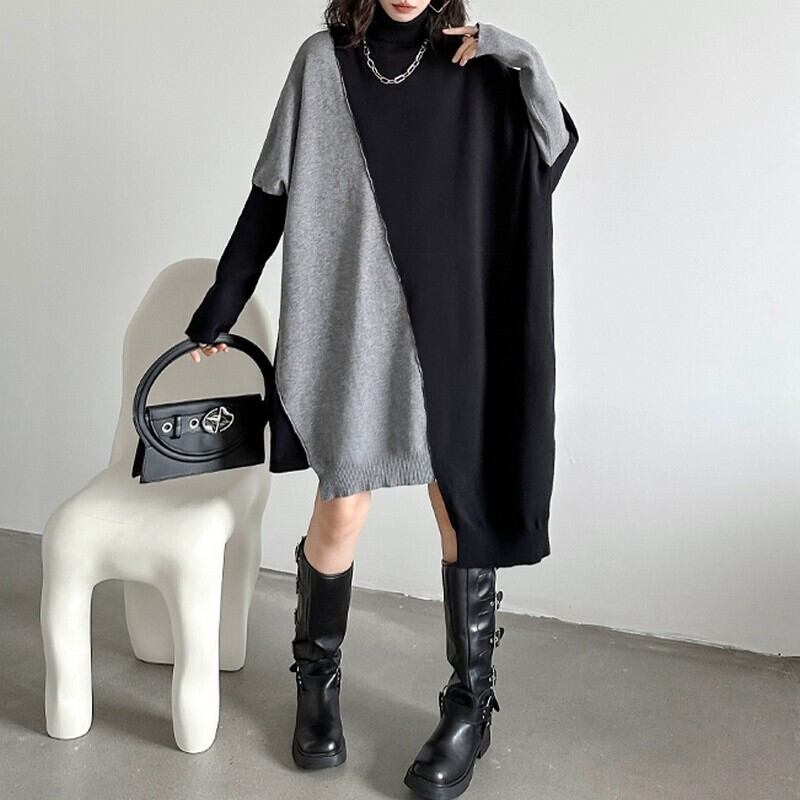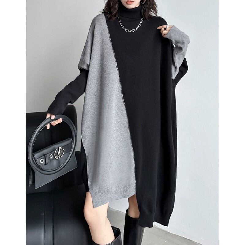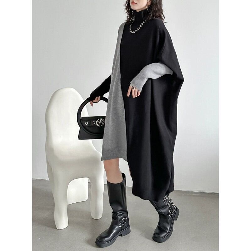 左右でカラーが切り替わる2トーンデザインが、シンプルながらモードに映えるワンピース。