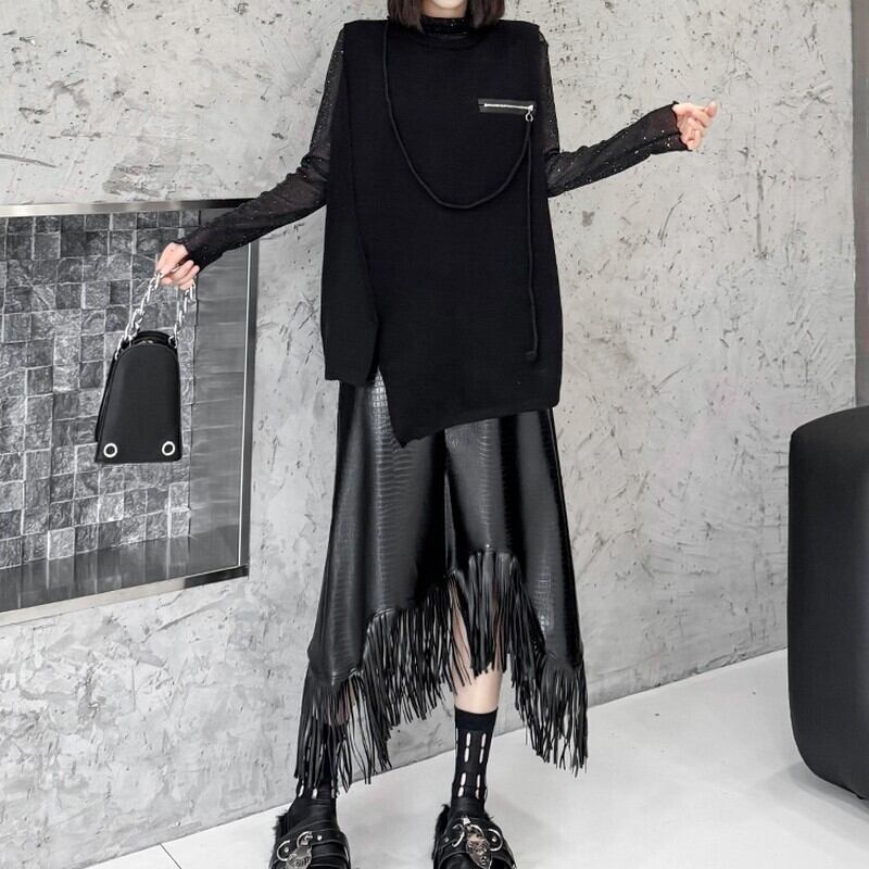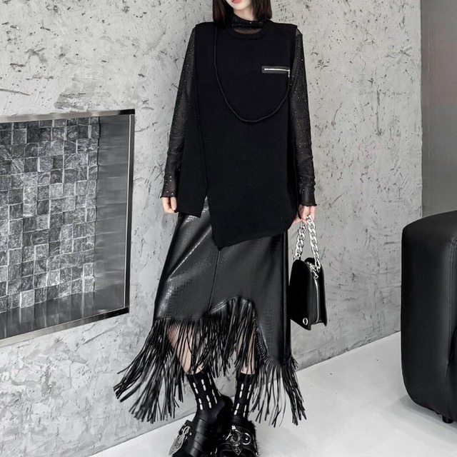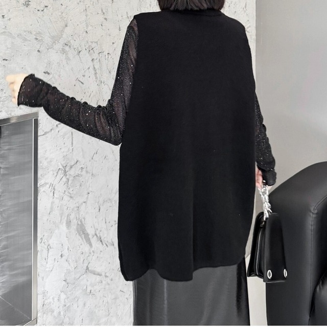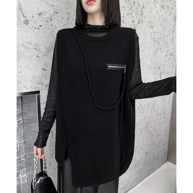 アシンメトリーなシルエットがモード感を引き立てるニットベスト。