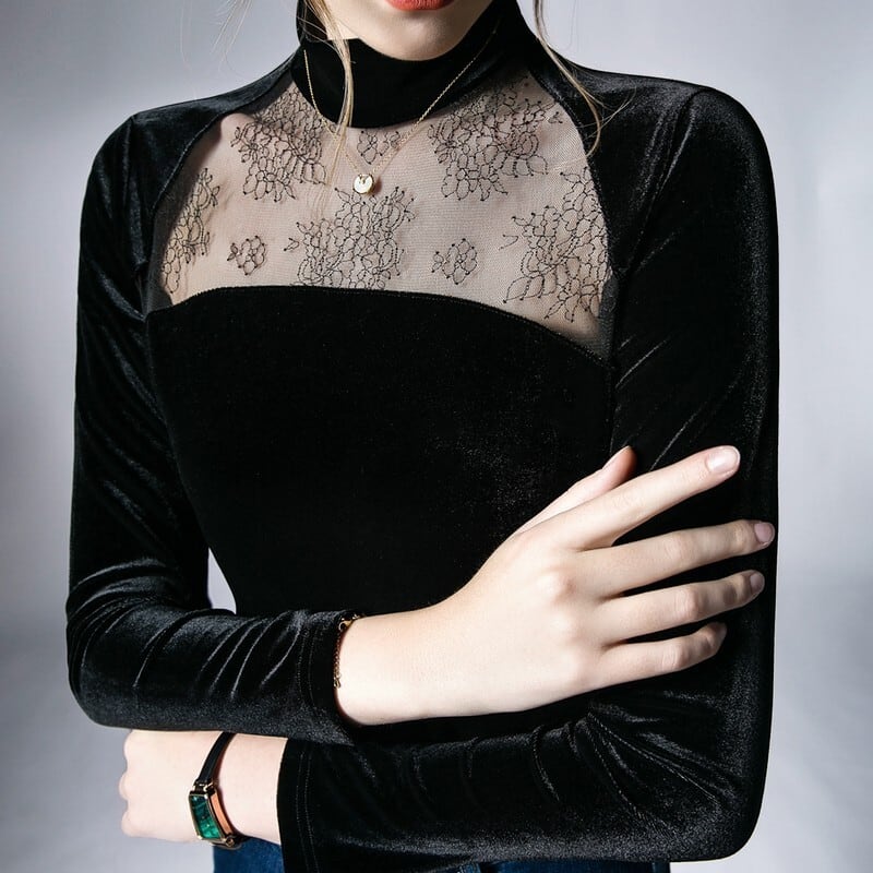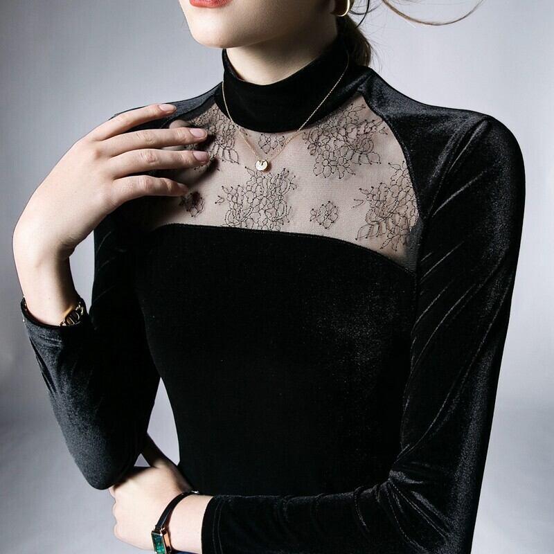 sheer lace velour tops / l0103