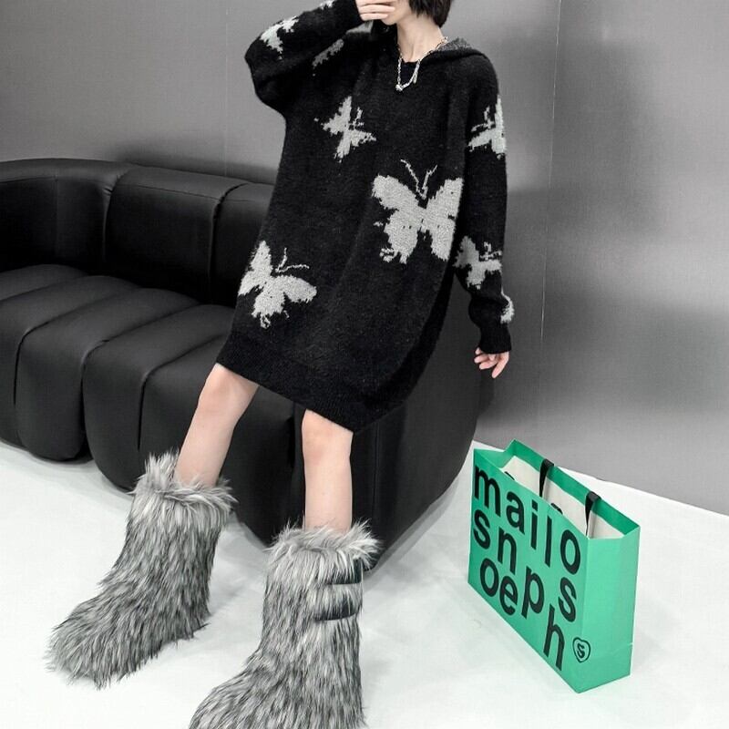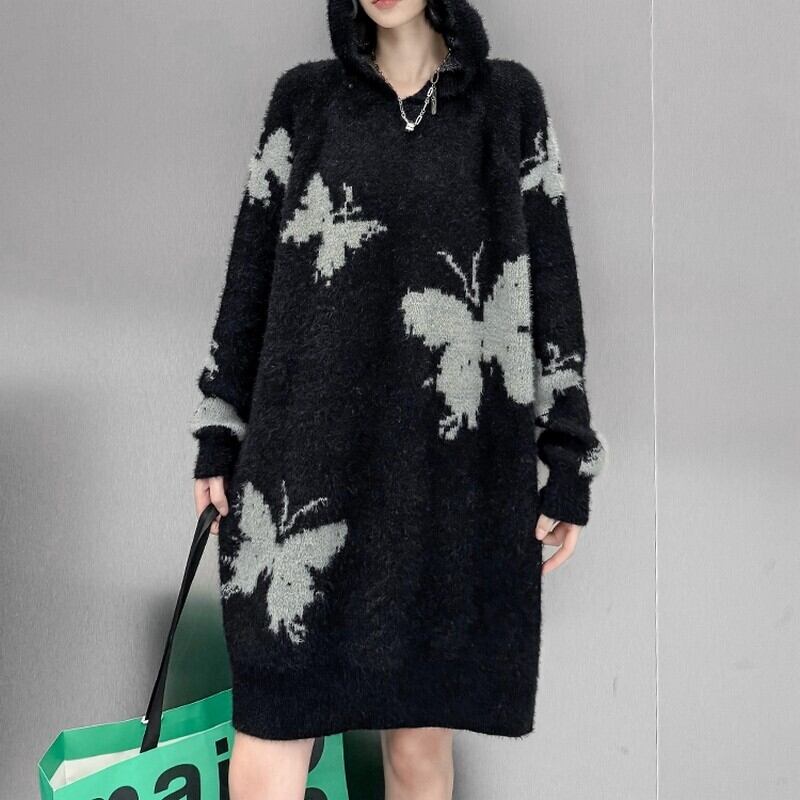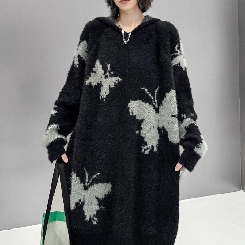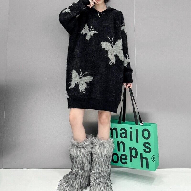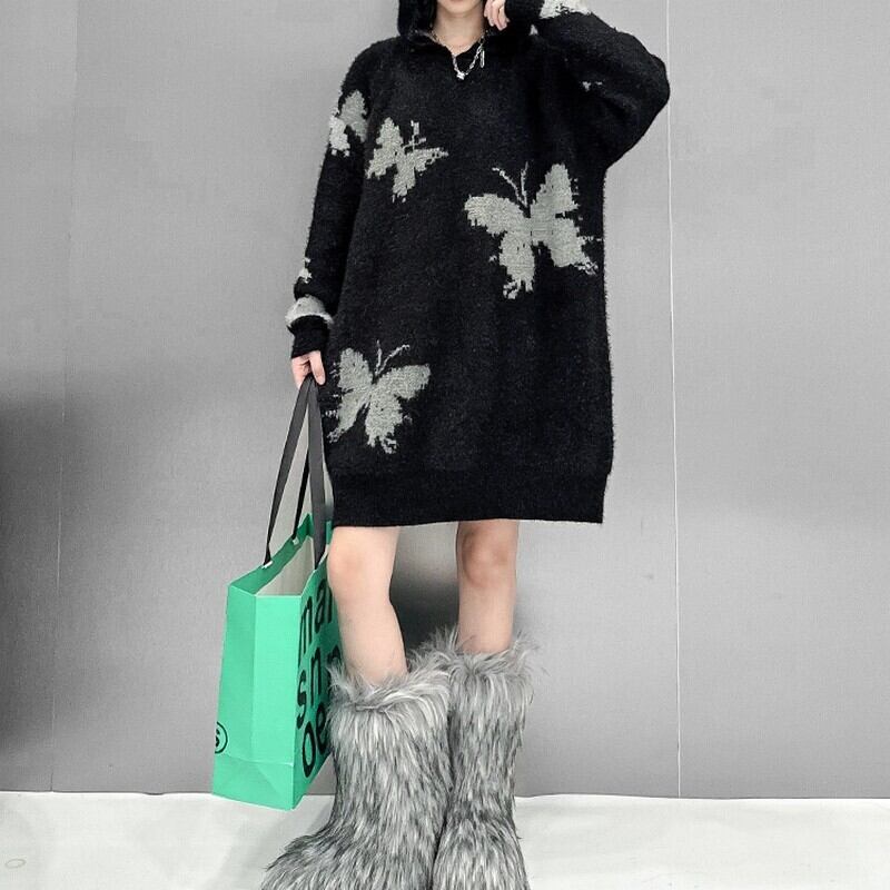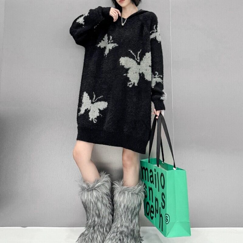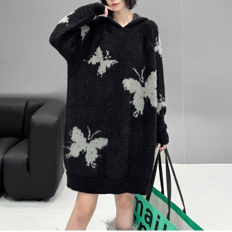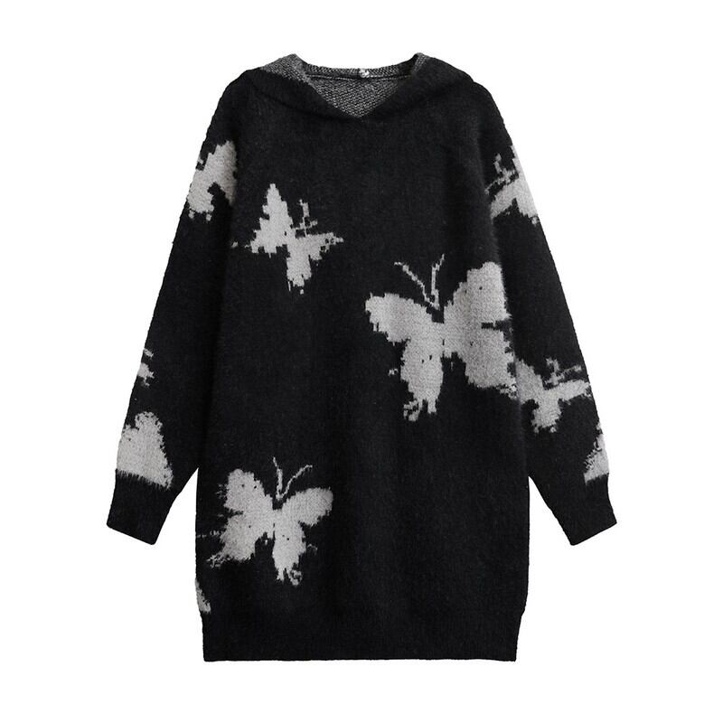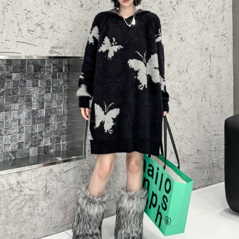 ふわっとしたニット素材にバタフライ柄をあしらったアイキャッチな一枚。
