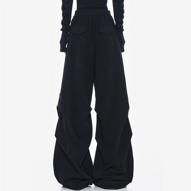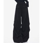 立体的なタック切り替えが存在感を放つ、モード感漂うワイドリブパンツ。