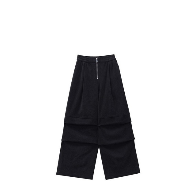 zip rib tuck wide pants / l0112