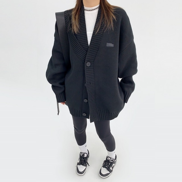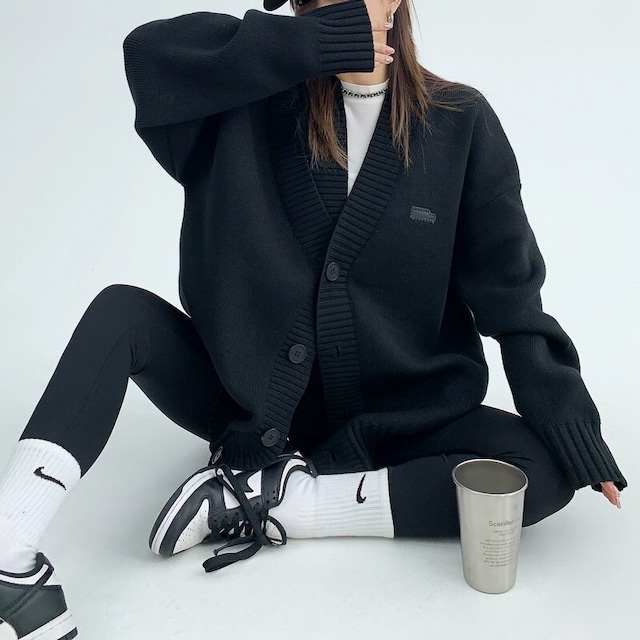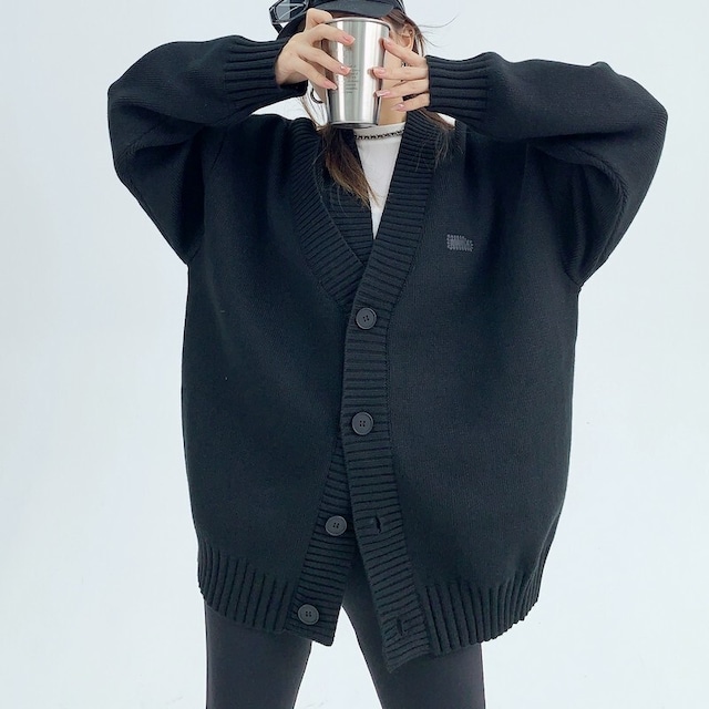 深めのVネックがシンプルながら存在感を放つオーバーサイズカーディガン。