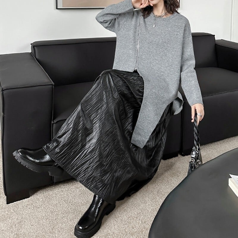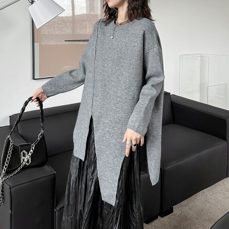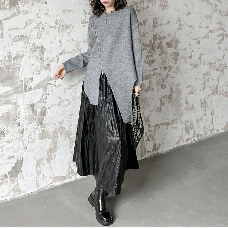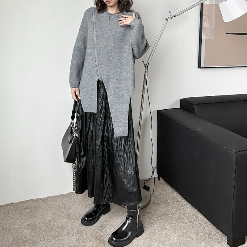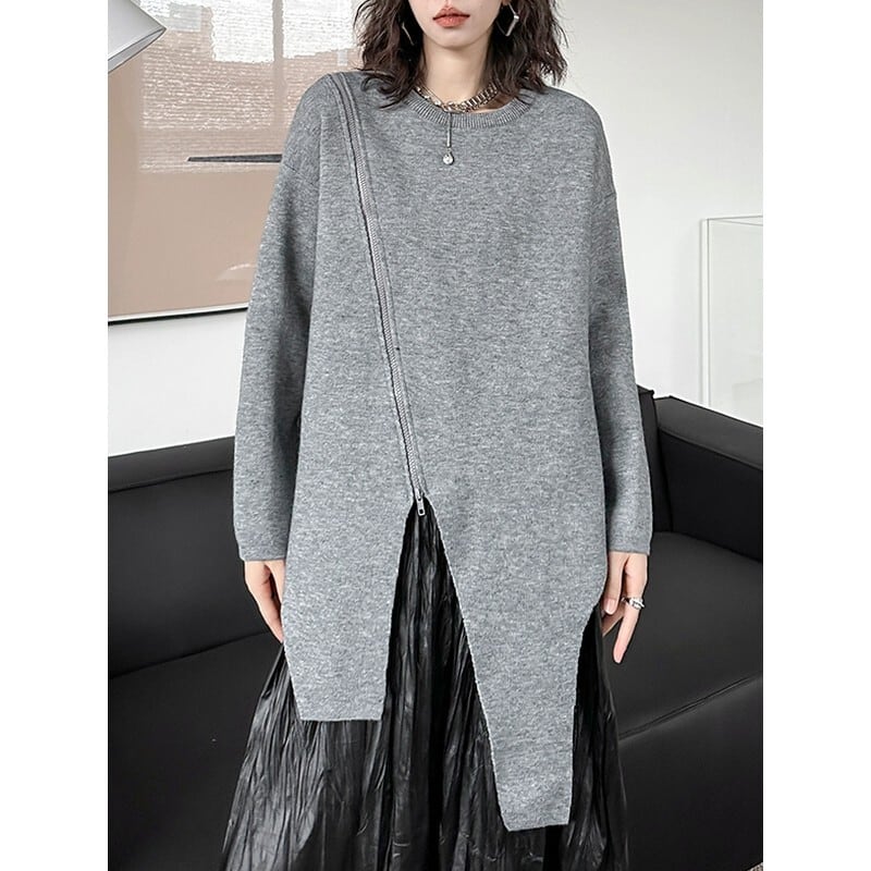 アシンメトリーに入ったジップデザインが、モードな抜け感を演出するニットプルオーバー。