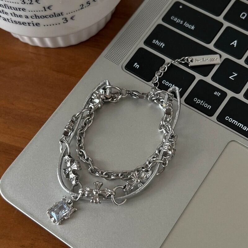 クロスモチーフとストーンを組み合わせた、存在感のあるミックスチェーンブレスレット。