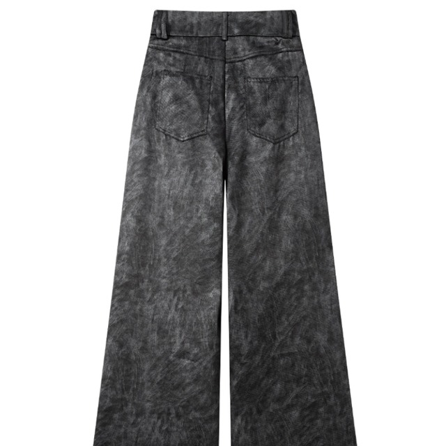 タイダイ柄が目を惹く、存在感のあるタックワイドパンツ。