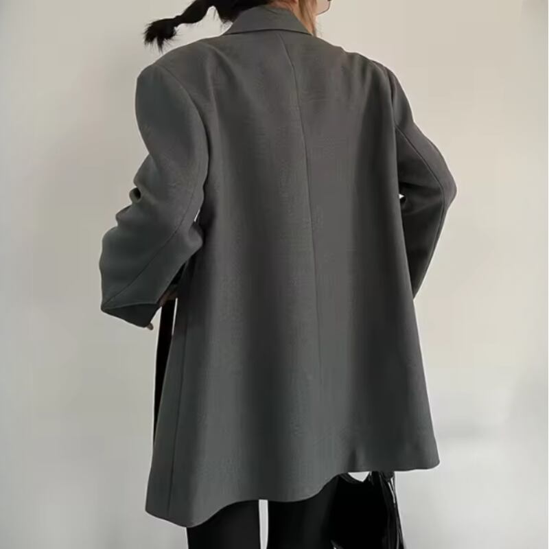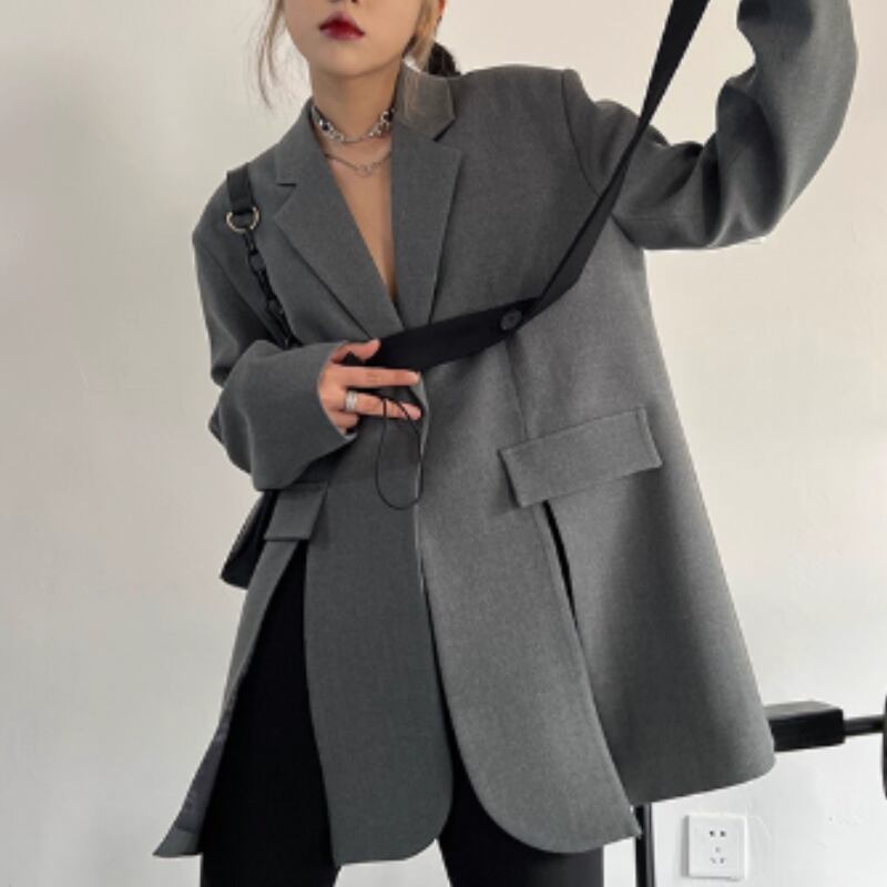 パンツにもスカートにも合わせやすく、モードな着こなしが完成する一着です。