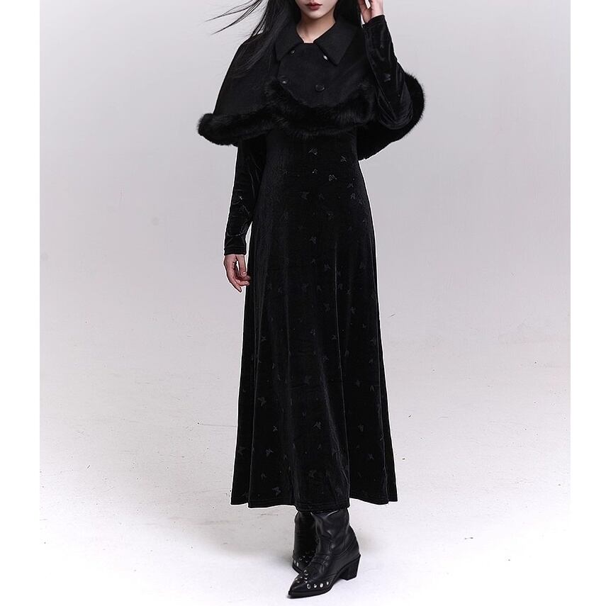 シンプルなワンピースに重ねるだけで、一気にモードな雰囲気に仕上がります。