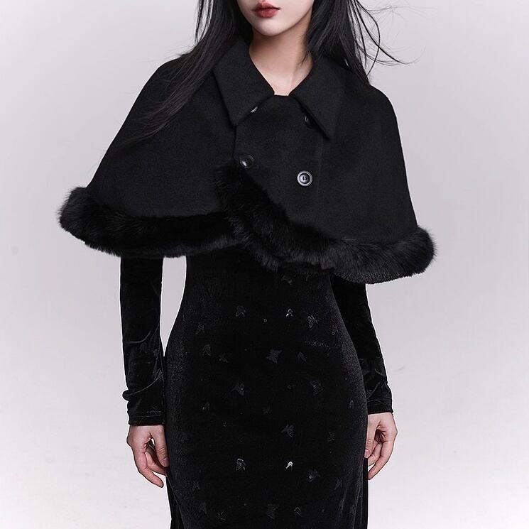 ふわっと羽織れるポンチョに、ファーが上品な存在感をプラス。