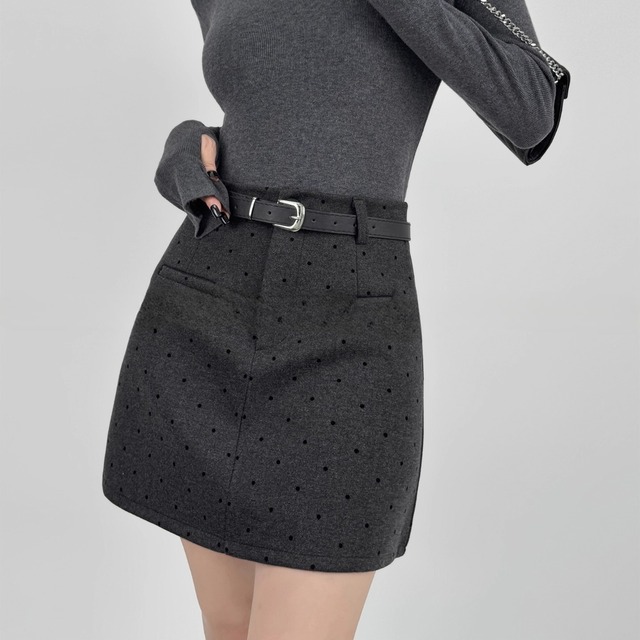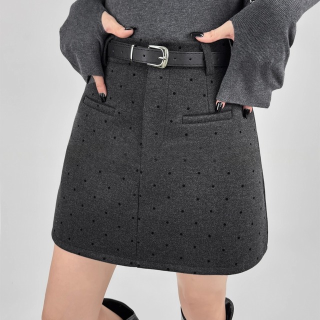 広がりすぎないタイトシルエットが上品でフェイクポケットがポイントとなります。