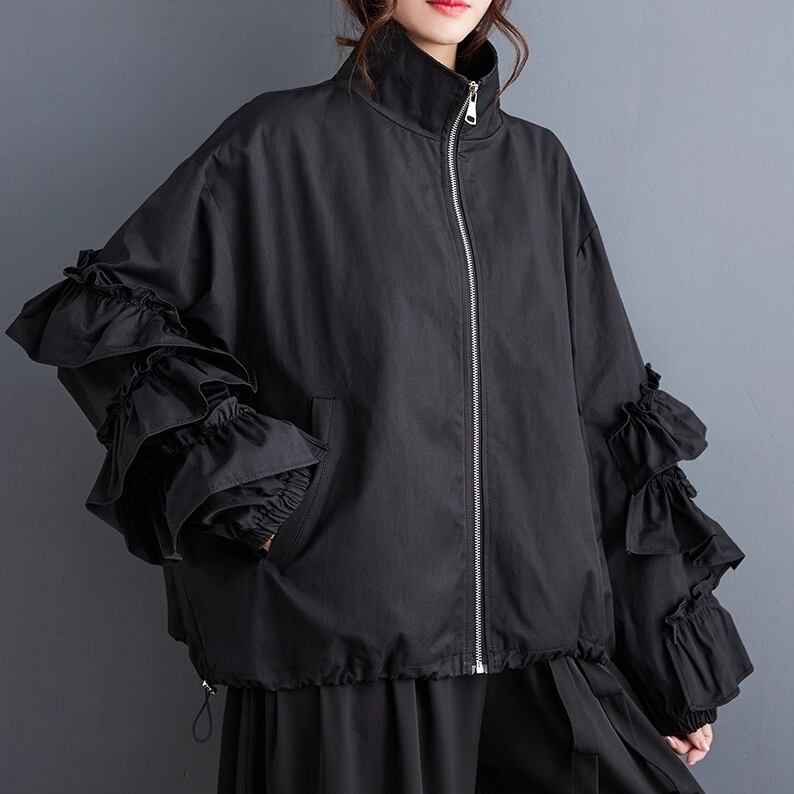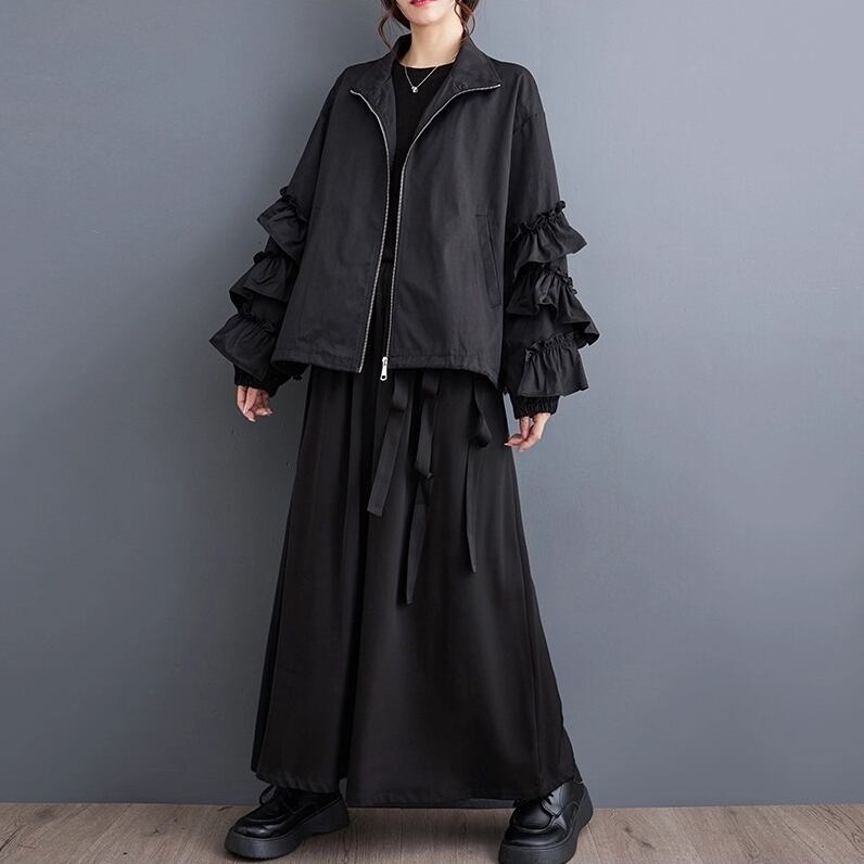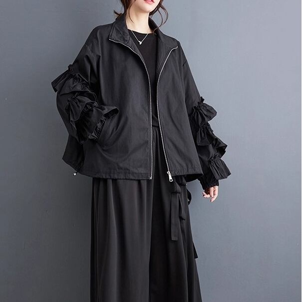 立体感のあるフリルスリーブが、シンプルな中に程よい大人フェミニンをプラスするジップジャケット。
