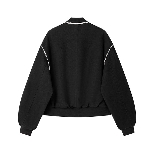 ラインのステッチがアクセントのブルゾン。ゆったりシルエットで着心地抜群。モダンな雰囲気漂うアクセントジップが特徴。モードにもカジュアルなスタイリングにも使い回せるさりげない存在感のデザインです。