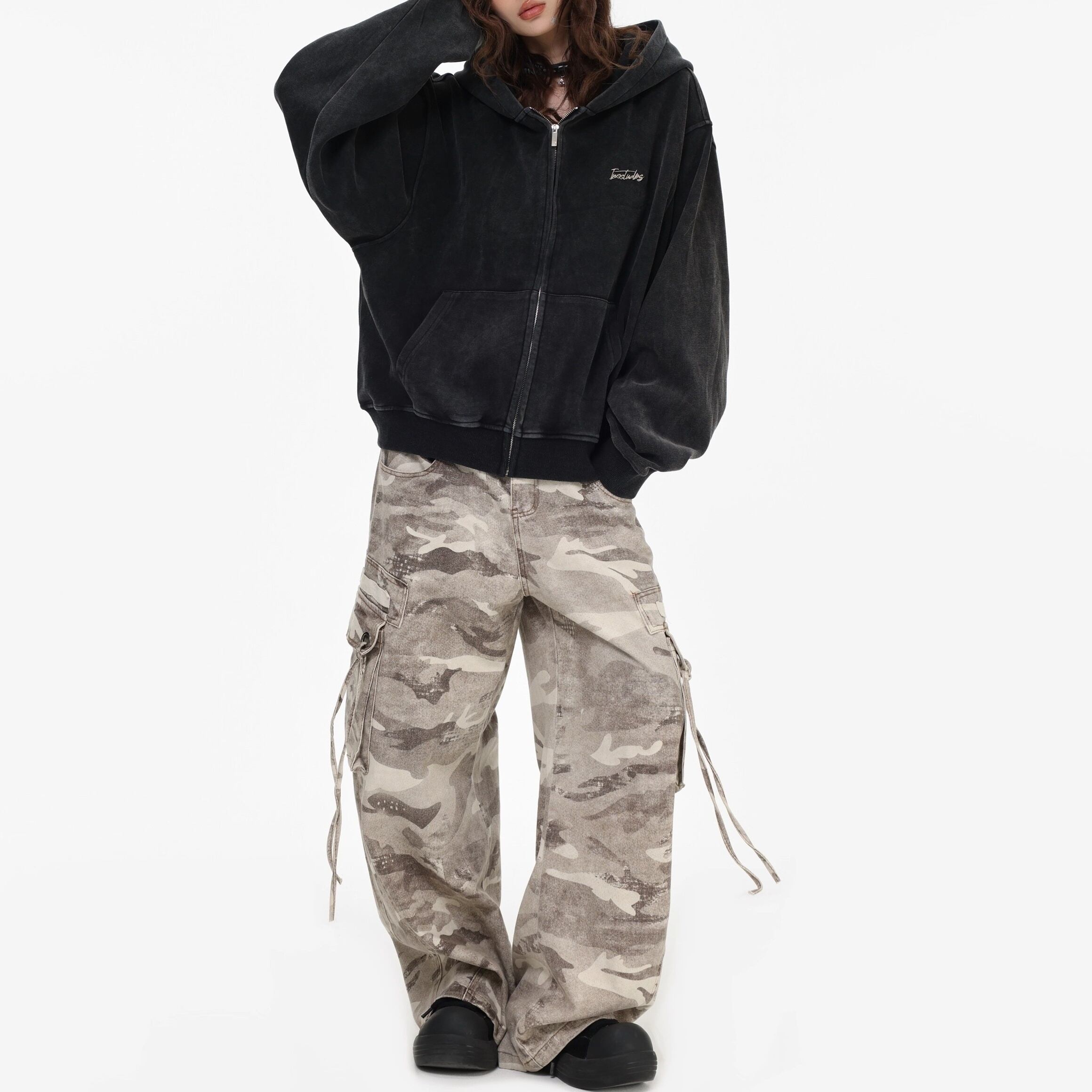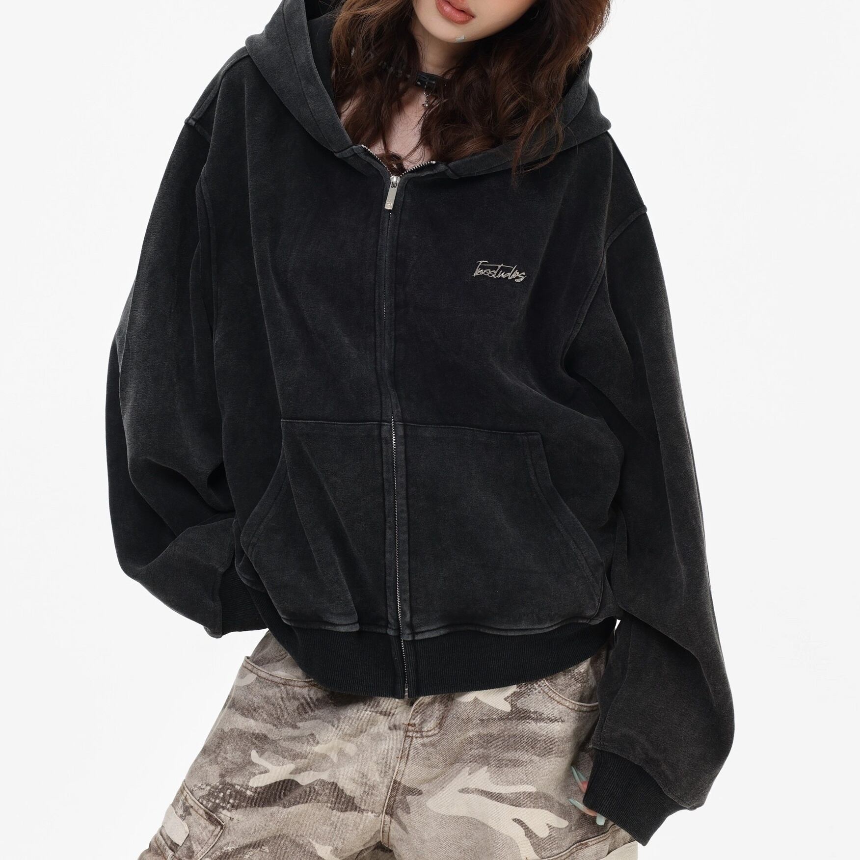 ジップを閉めてトップスとしても、開けてアウターとしても着回しが効くアイテムです。
