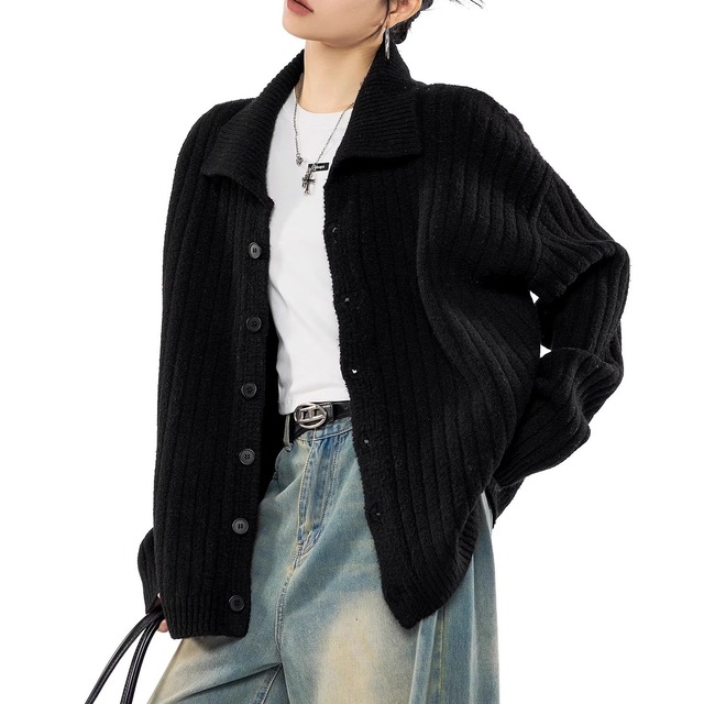 rib knit cardigan tops / l0173