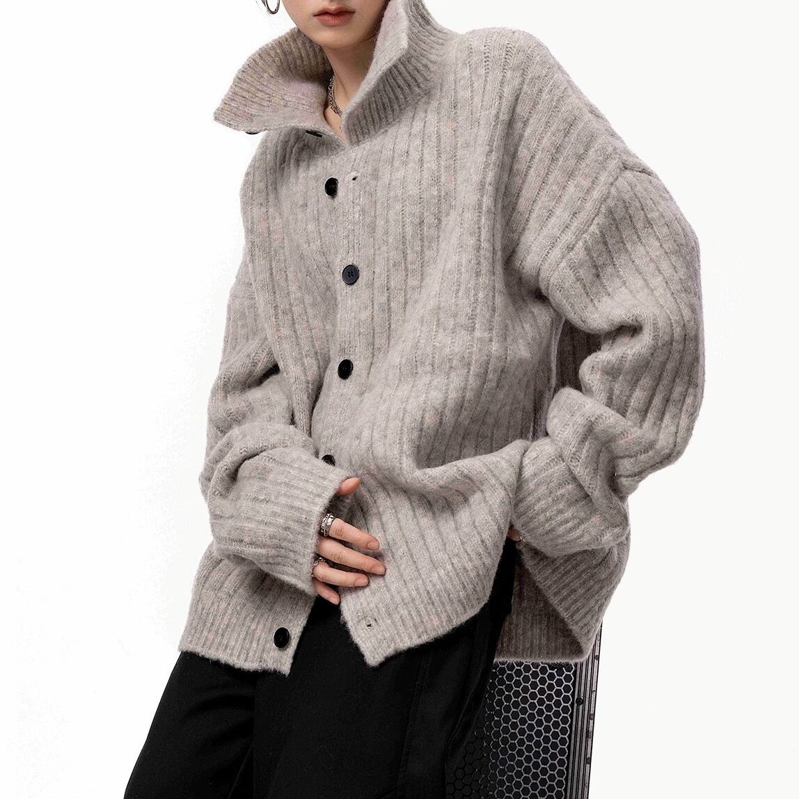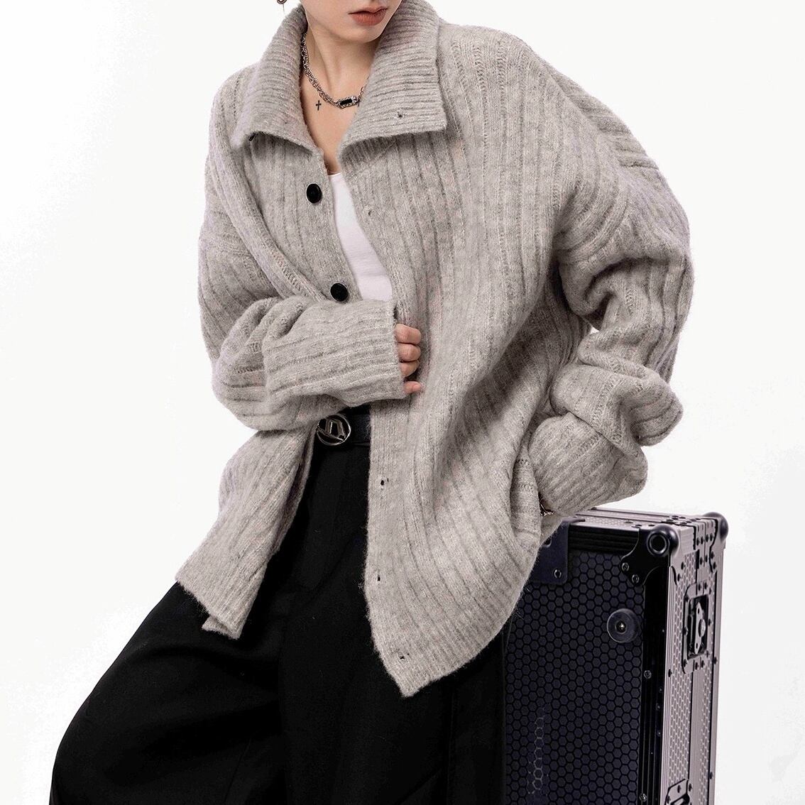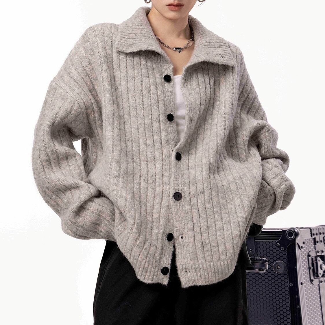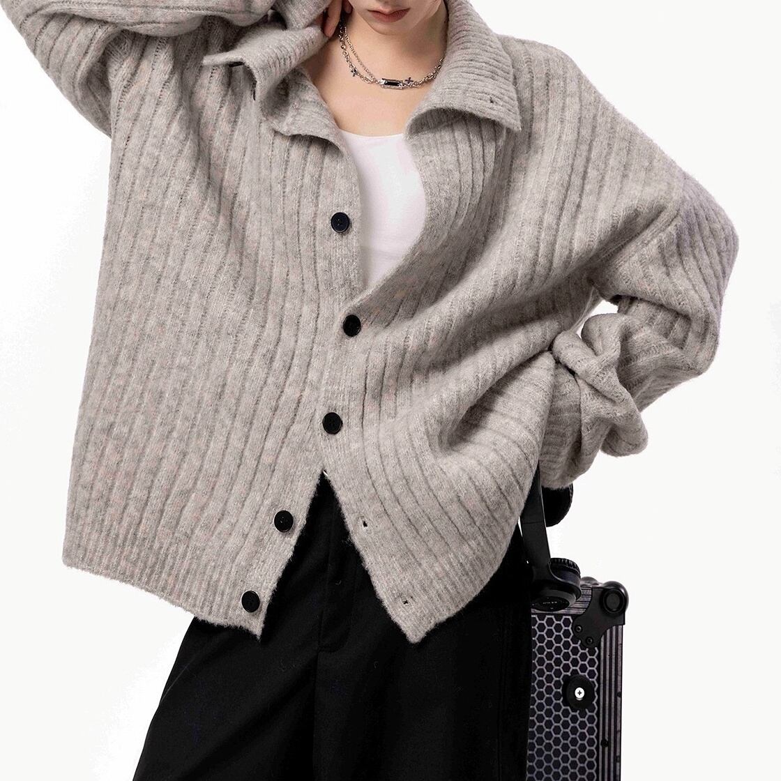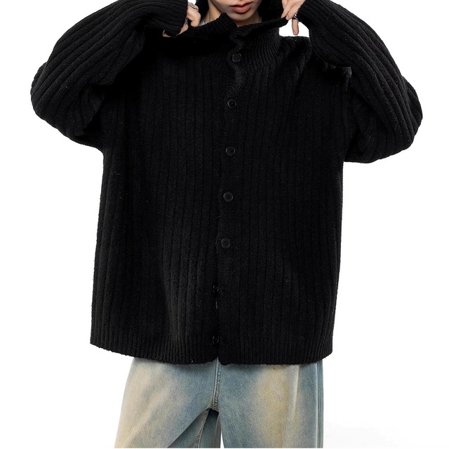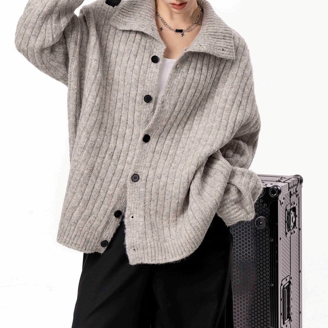 リブ編み素材を使用した、表情のあるニットカーディガン。