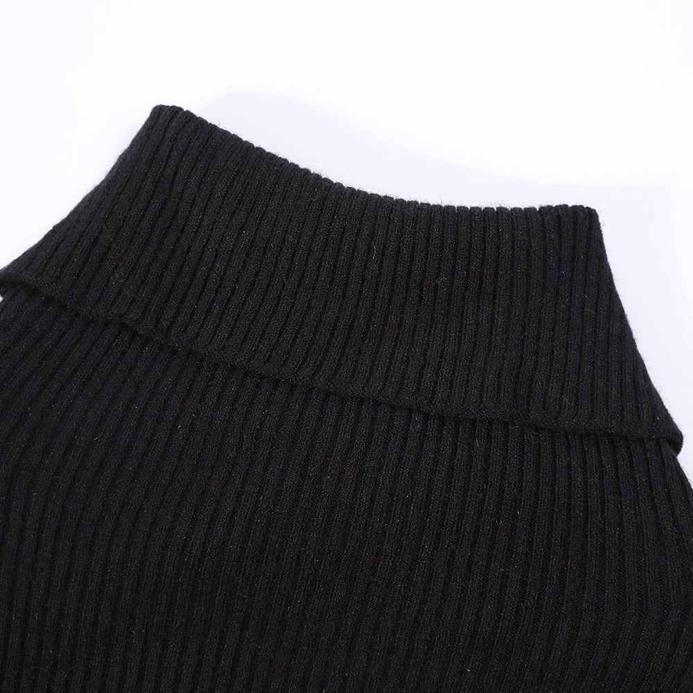 レイヤード風のデザインで、肌見せがありながらもモードな印象に仕上がります。