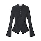 斜めに重なるアシンメトリーデザインが印象的なリブニットトップス。