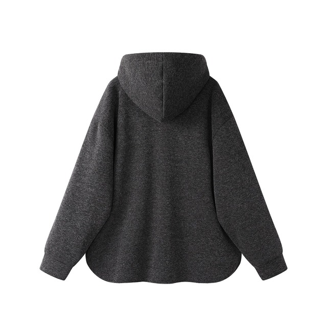 ハーフジップデザインがポイントの、シンプルながら洗練されたフーディスウェット。
