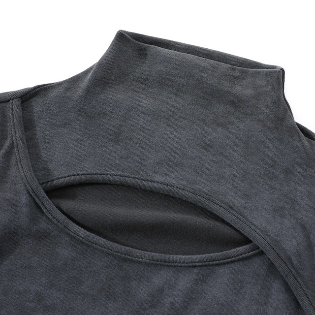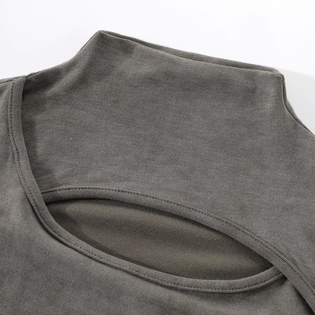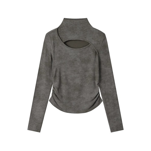 cutout neck shirring tops / l0186
