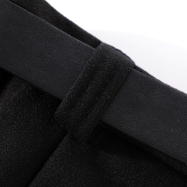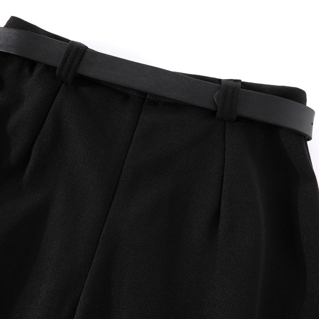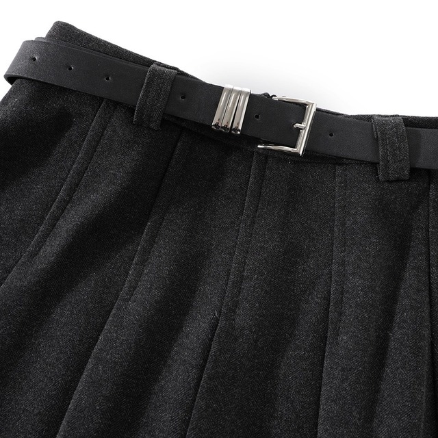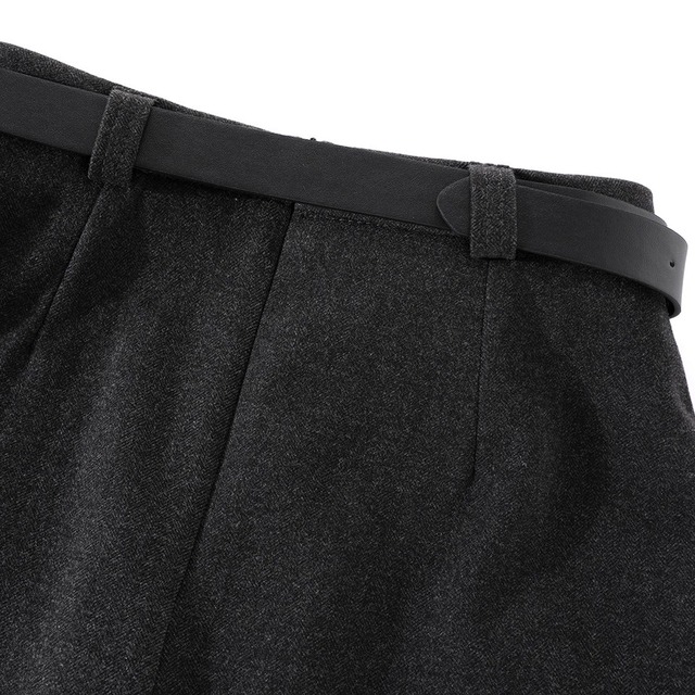 ウエストにはベルトを施し、シンプルながらも程よくエッジの効いた印象に仕上げています。