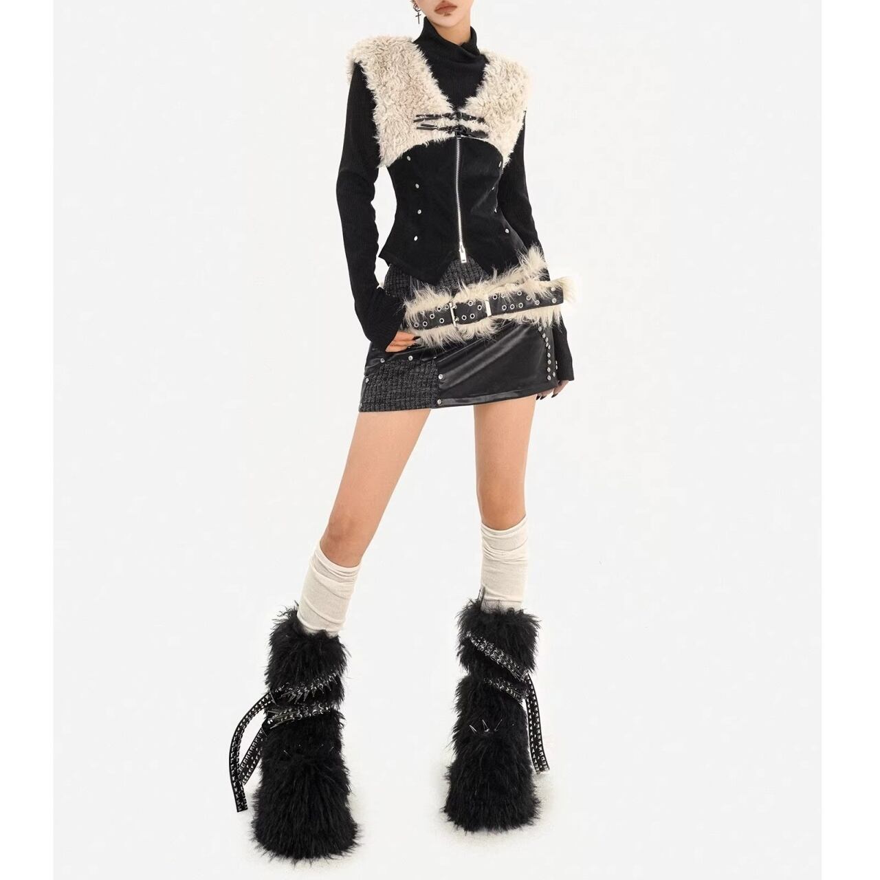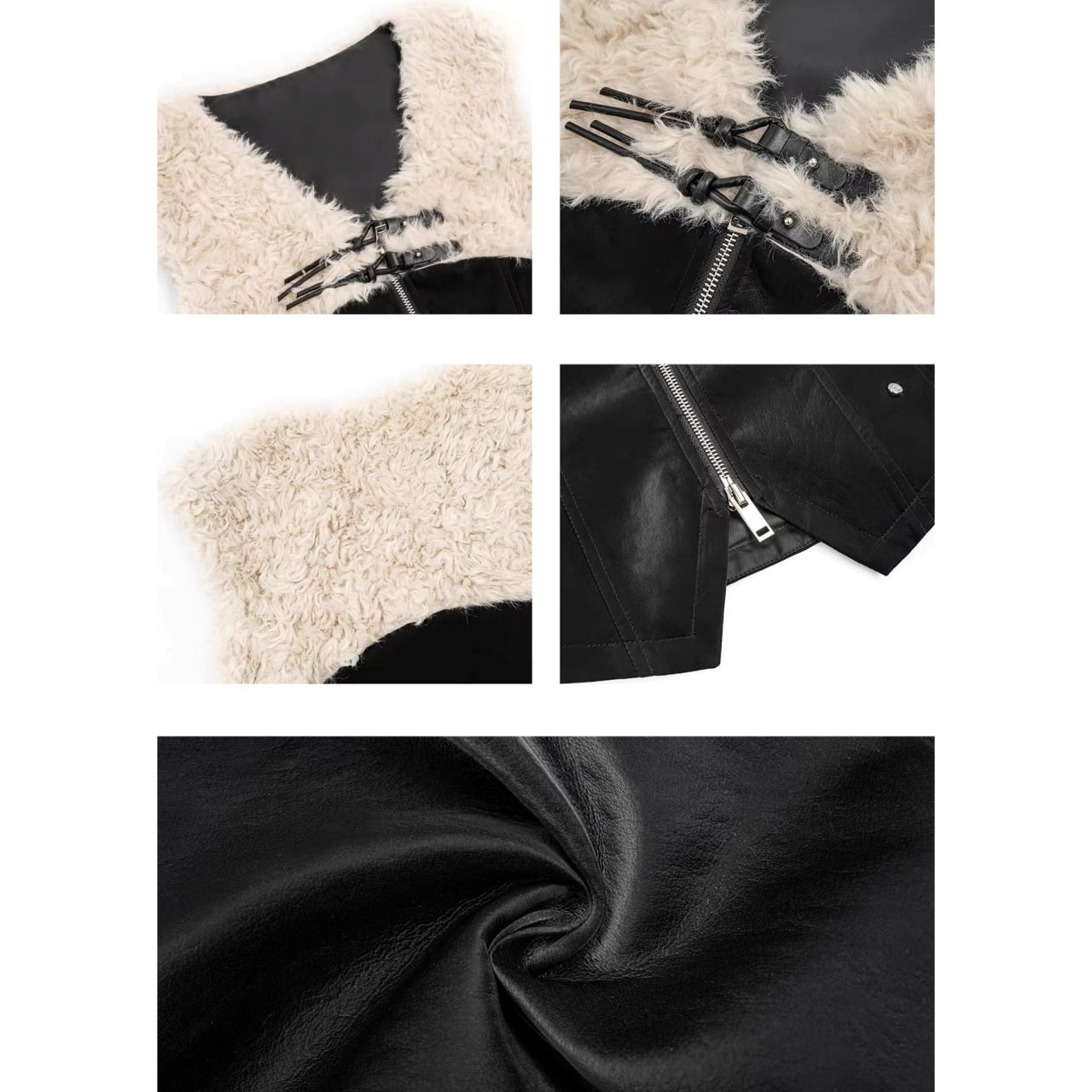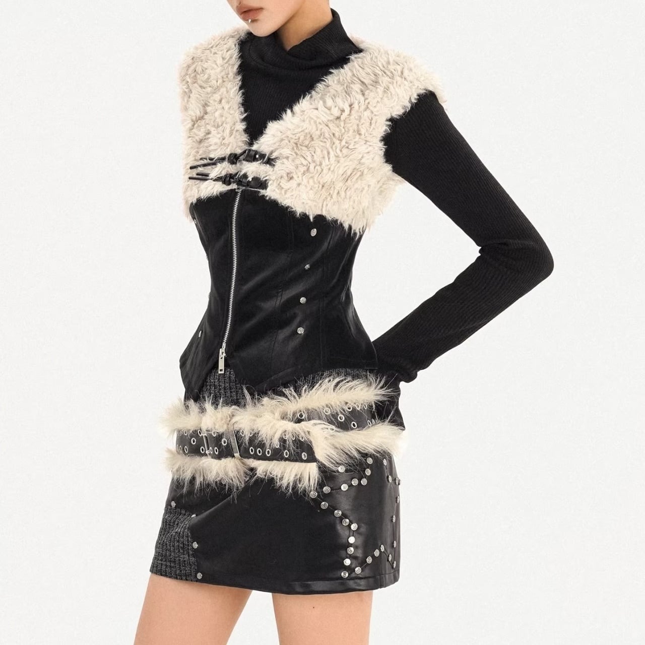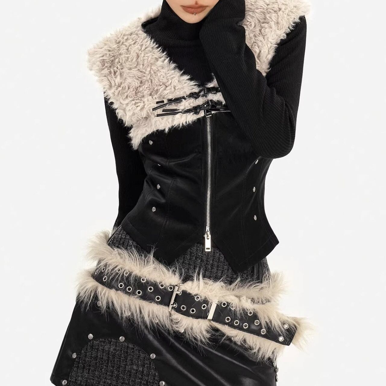 フェイクレザーとファーを組み合わせたデザインベスト。